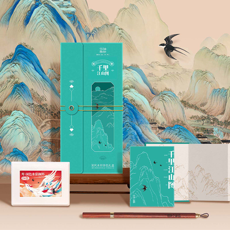 📚 飞乐鸟怀袖雅物国风水彩涂色绘画线稿本套装旅行装描红古风白描画