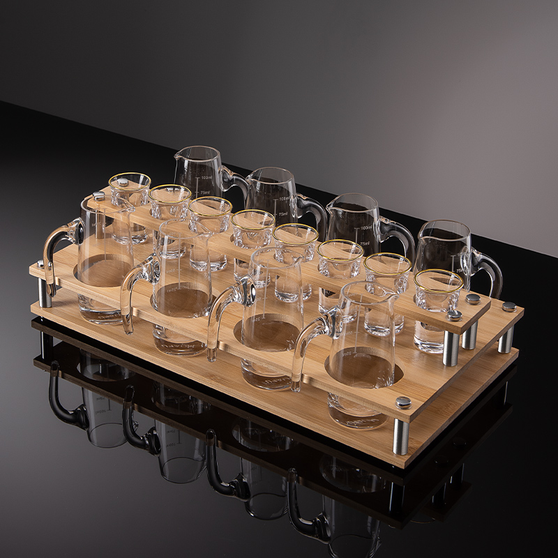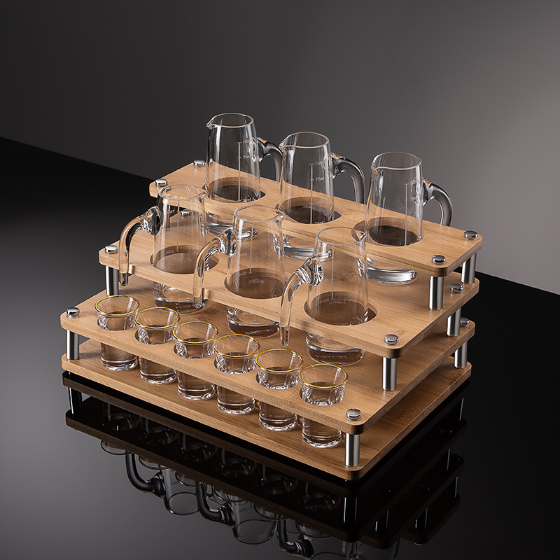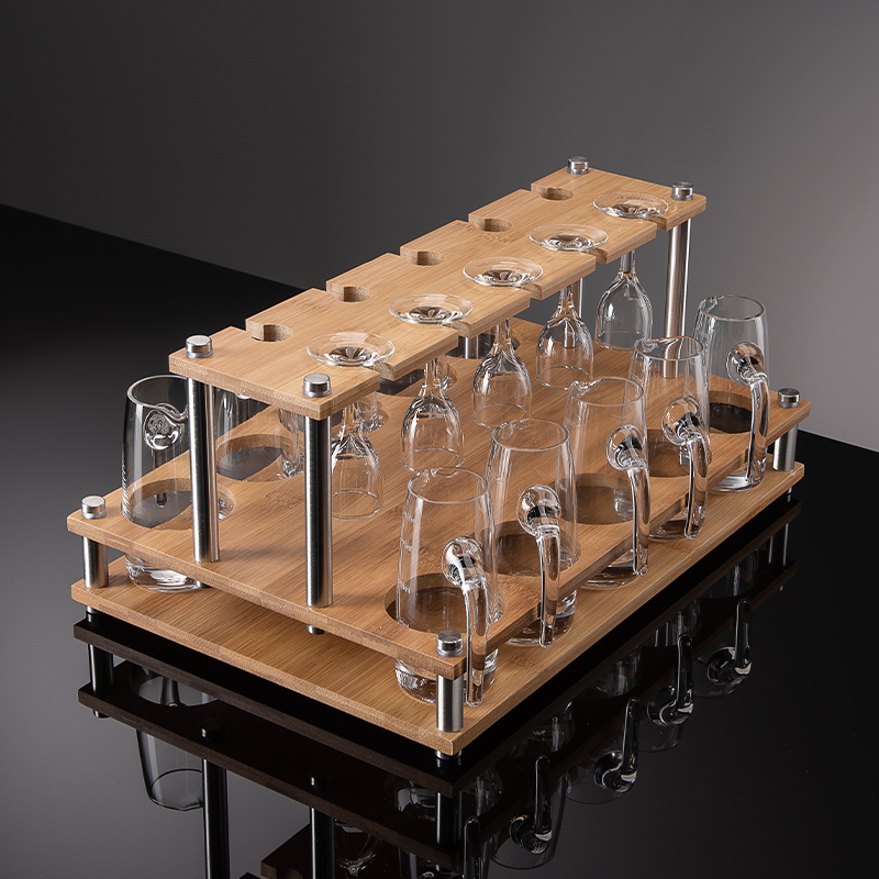 📚 家用白酒杯架摆件创意分酒器竹木制托架子专用酒具收纳打孔展示架