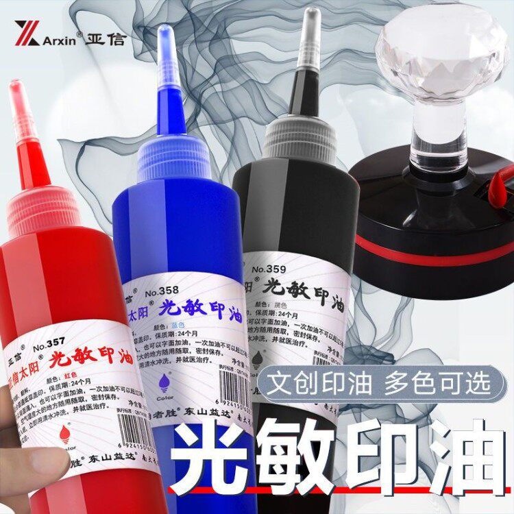 📚 亚信30ML光敏印油财务印章光敏公章专用印油红色黑色快干纸张油墨100毫升蓝色速干常规墨水发票章签名章补充