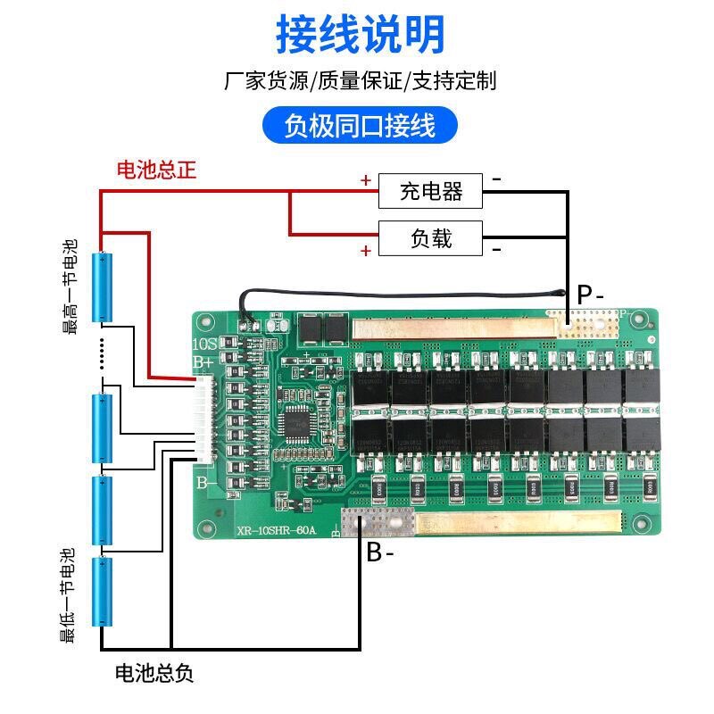 📚 10串36V 锂电池保护板 40A50A60A大电流同口均衡温控电动车保护板