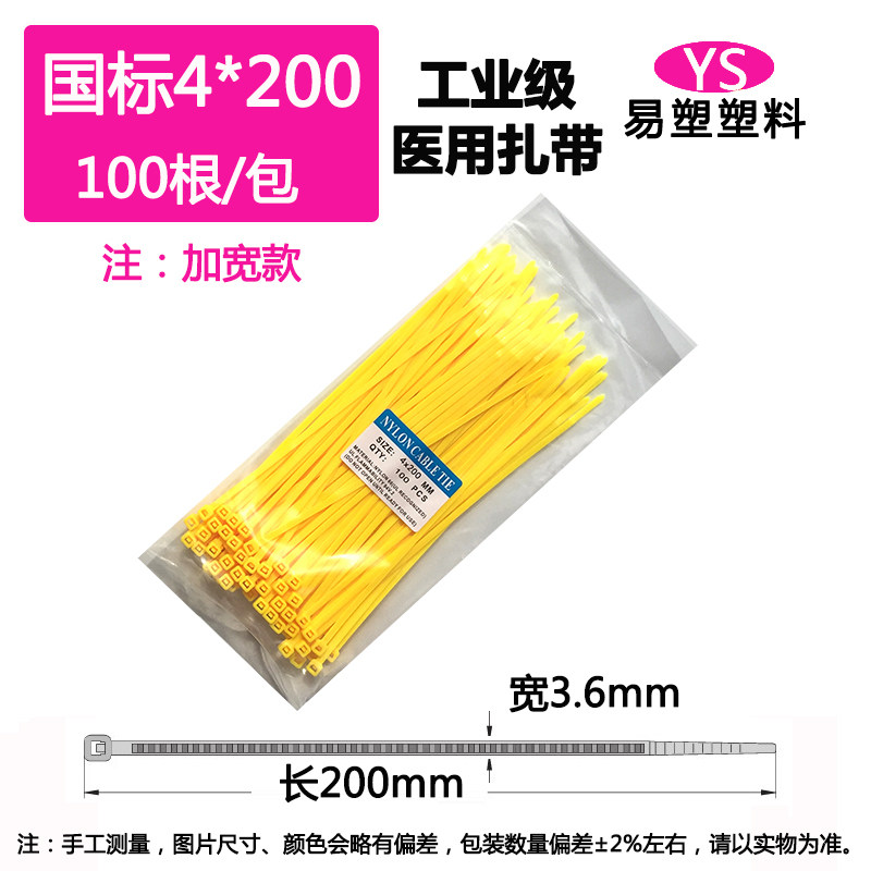 📚 黄色扎带4*200医用废弃物平口垃圾袋封口专用尼龙扎带吊牌标签250