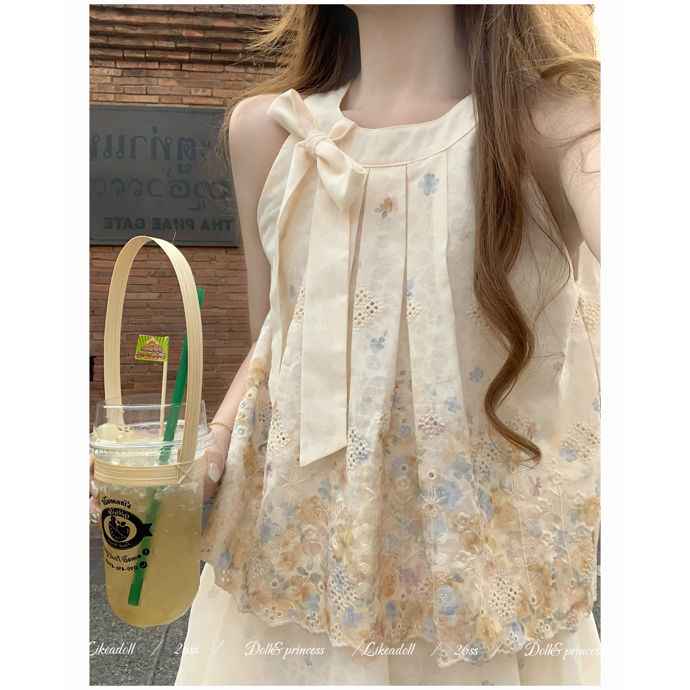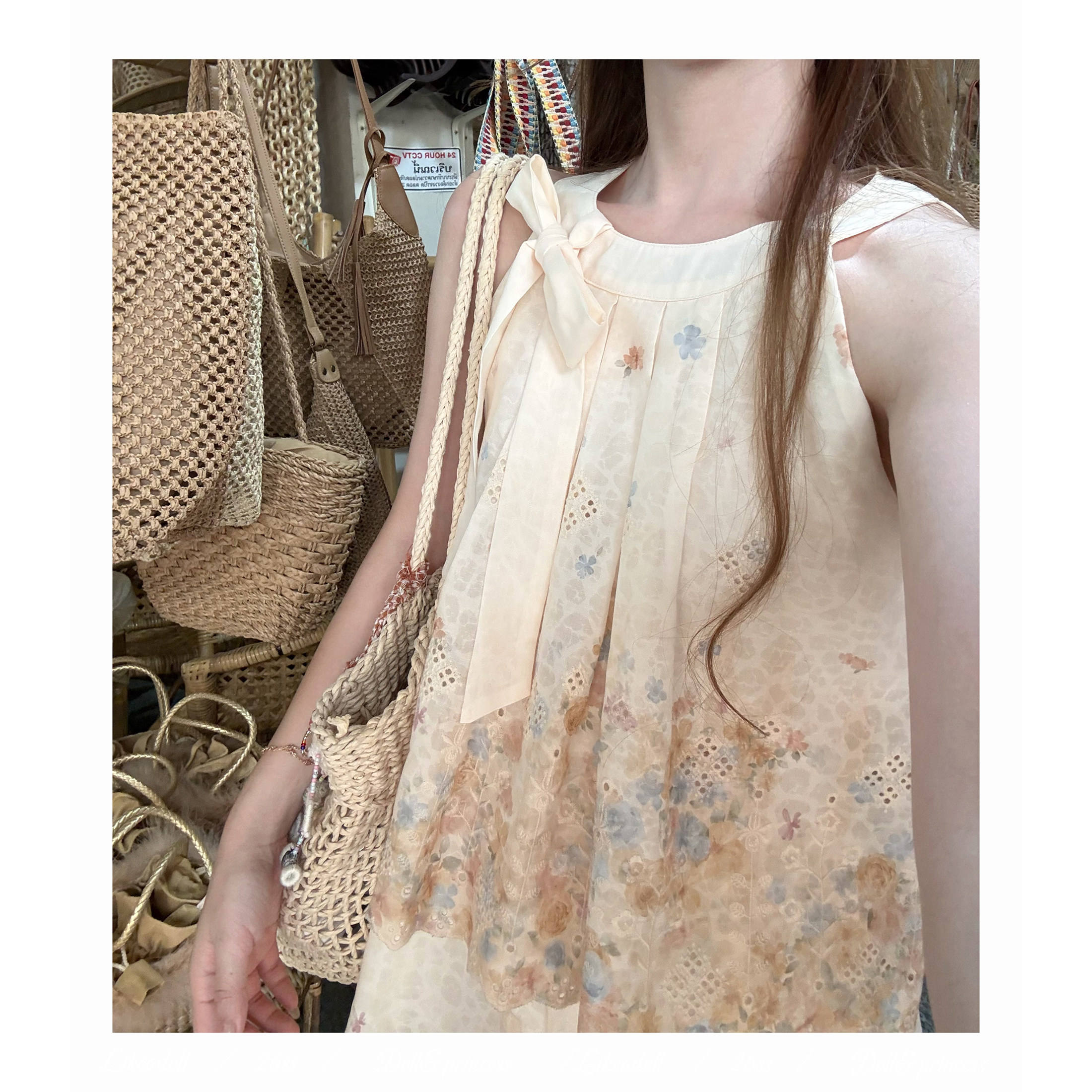 📚 Doll原创『繁花假日』假两件蝴蝶结花苞挂脖连衣裙甜美碎花短裙