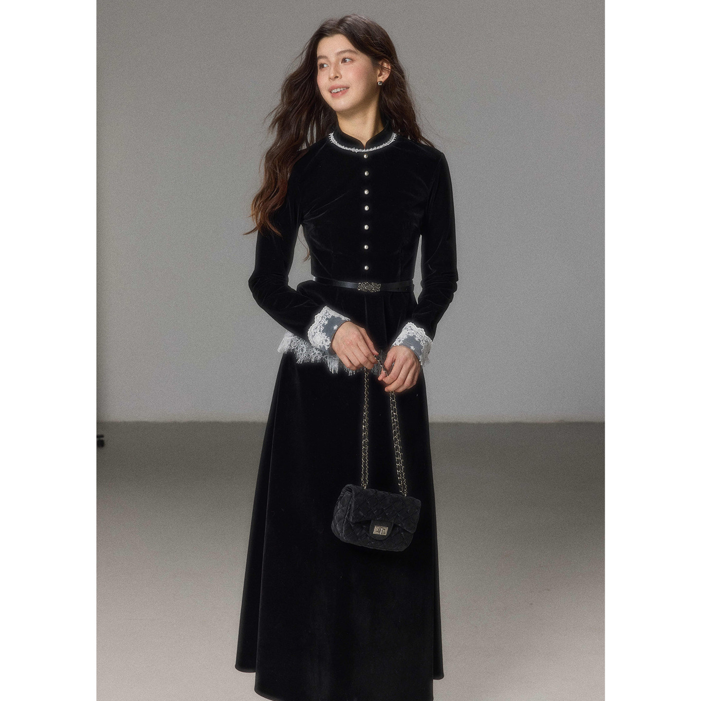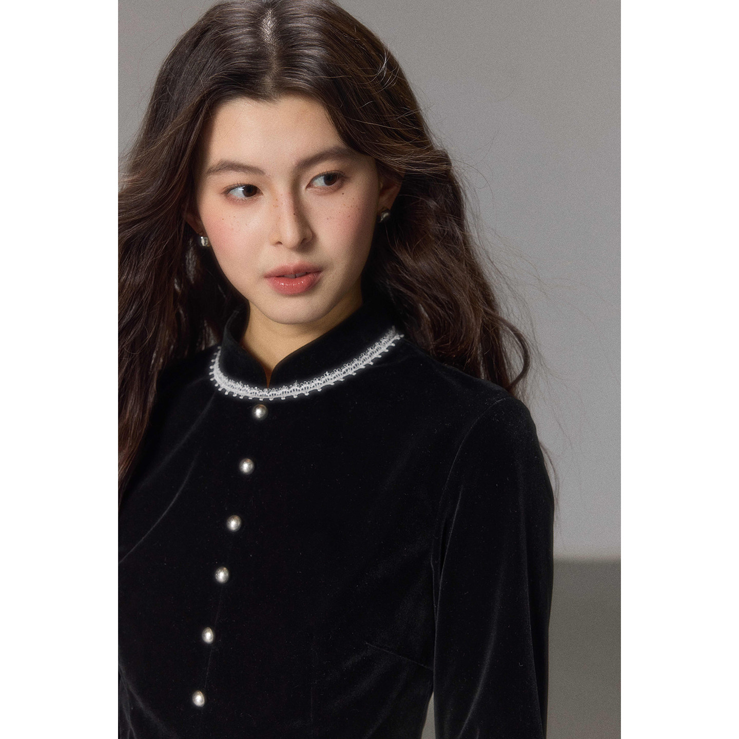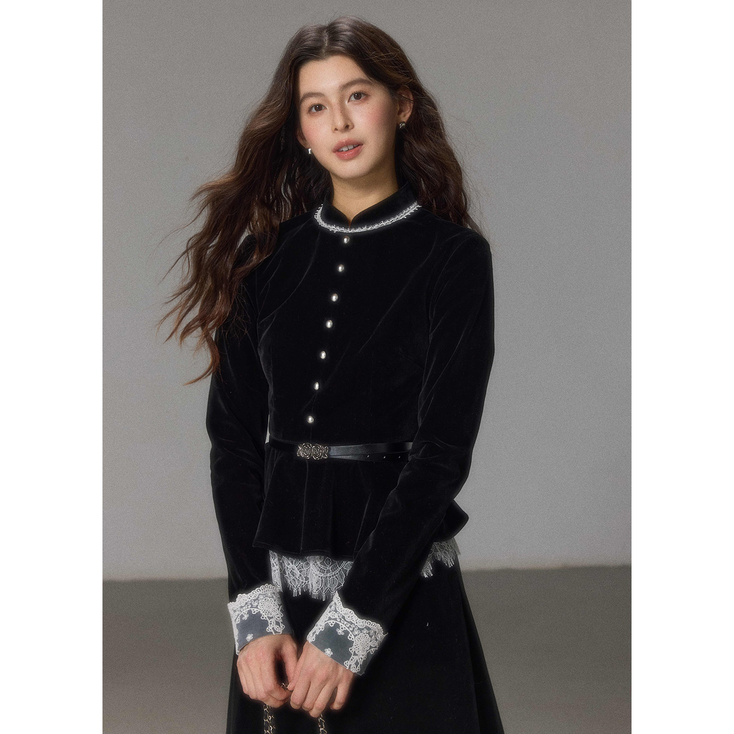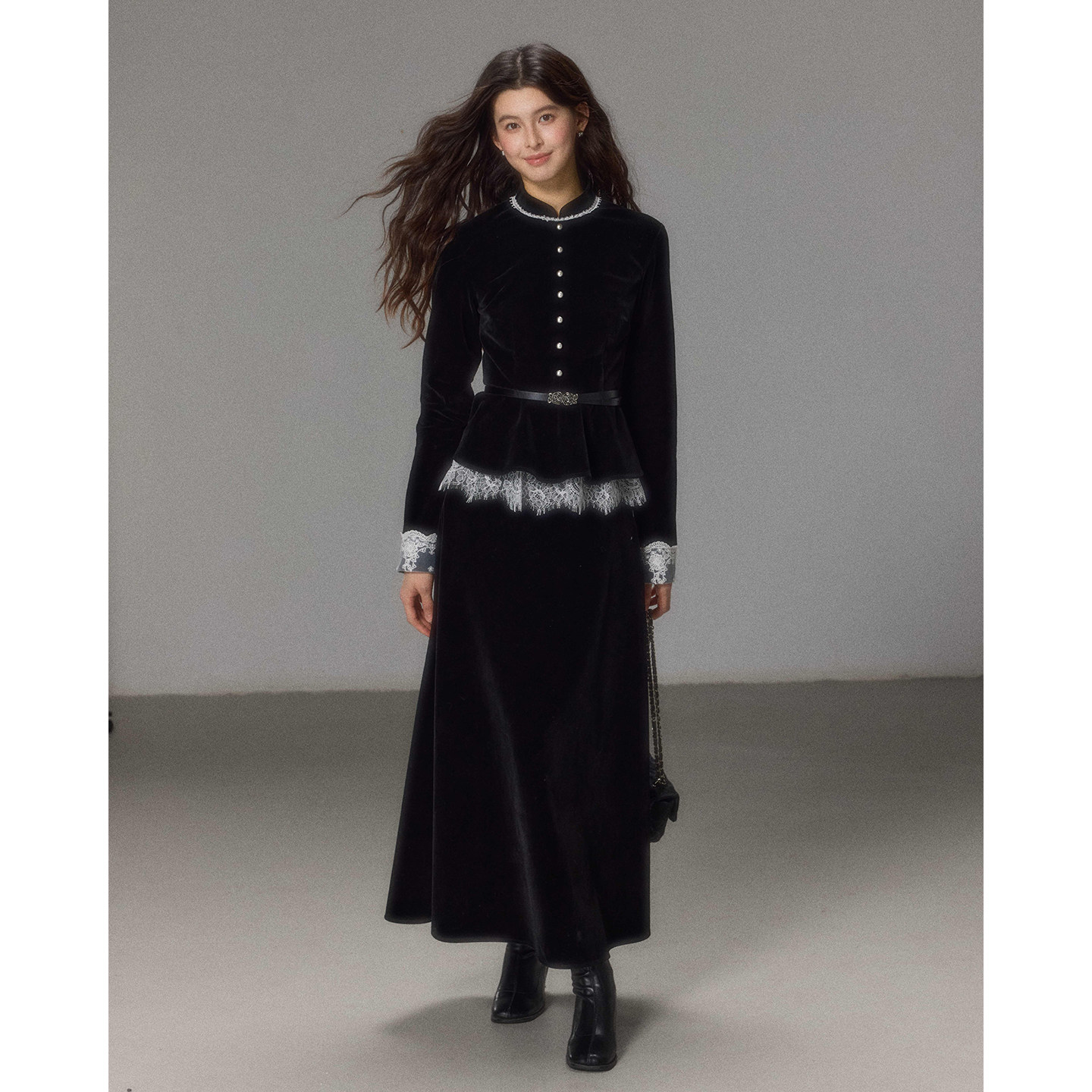 📚 贰羊设计【郁晚】复古优雅黑色丝绒高级感套装女法式衬衫a字长裙