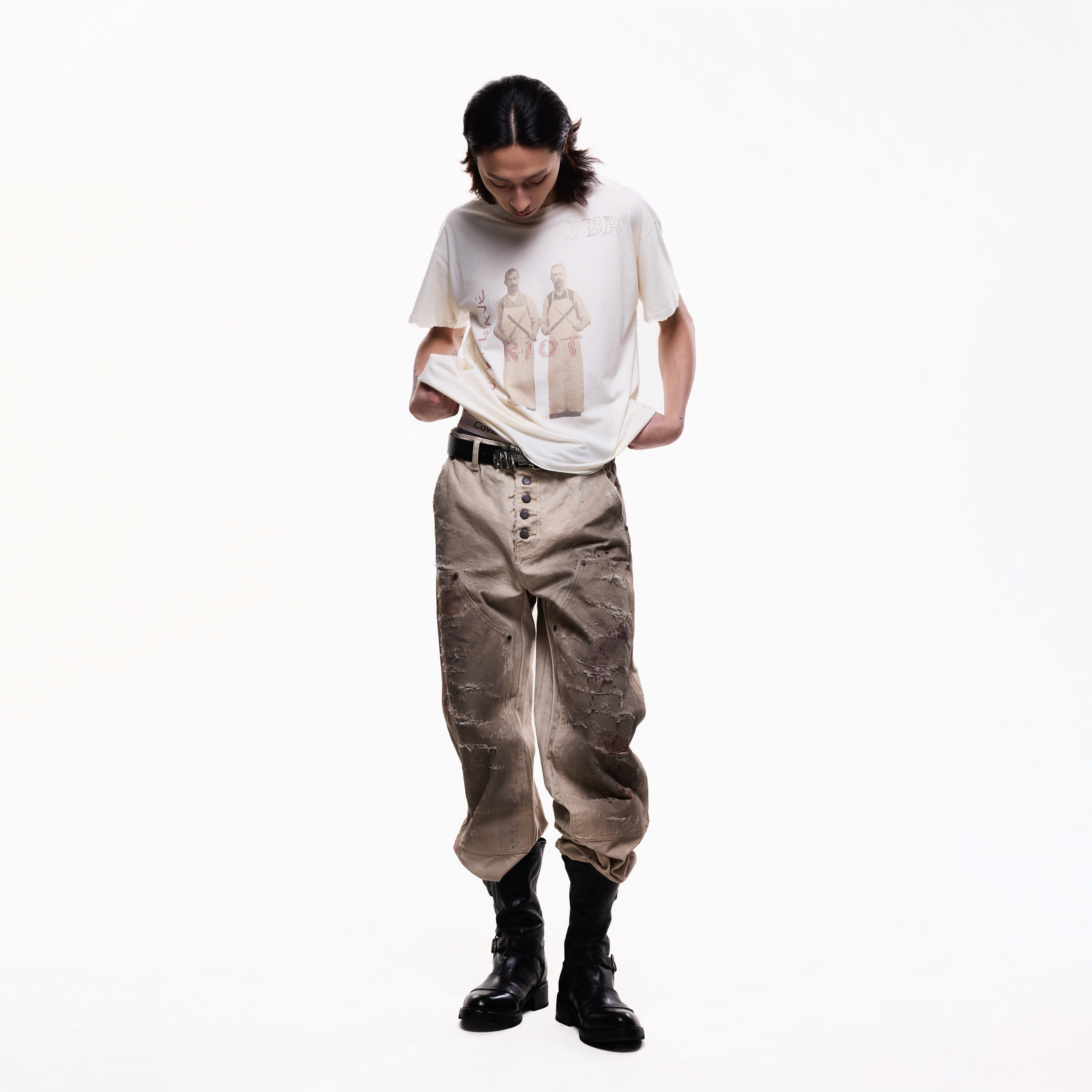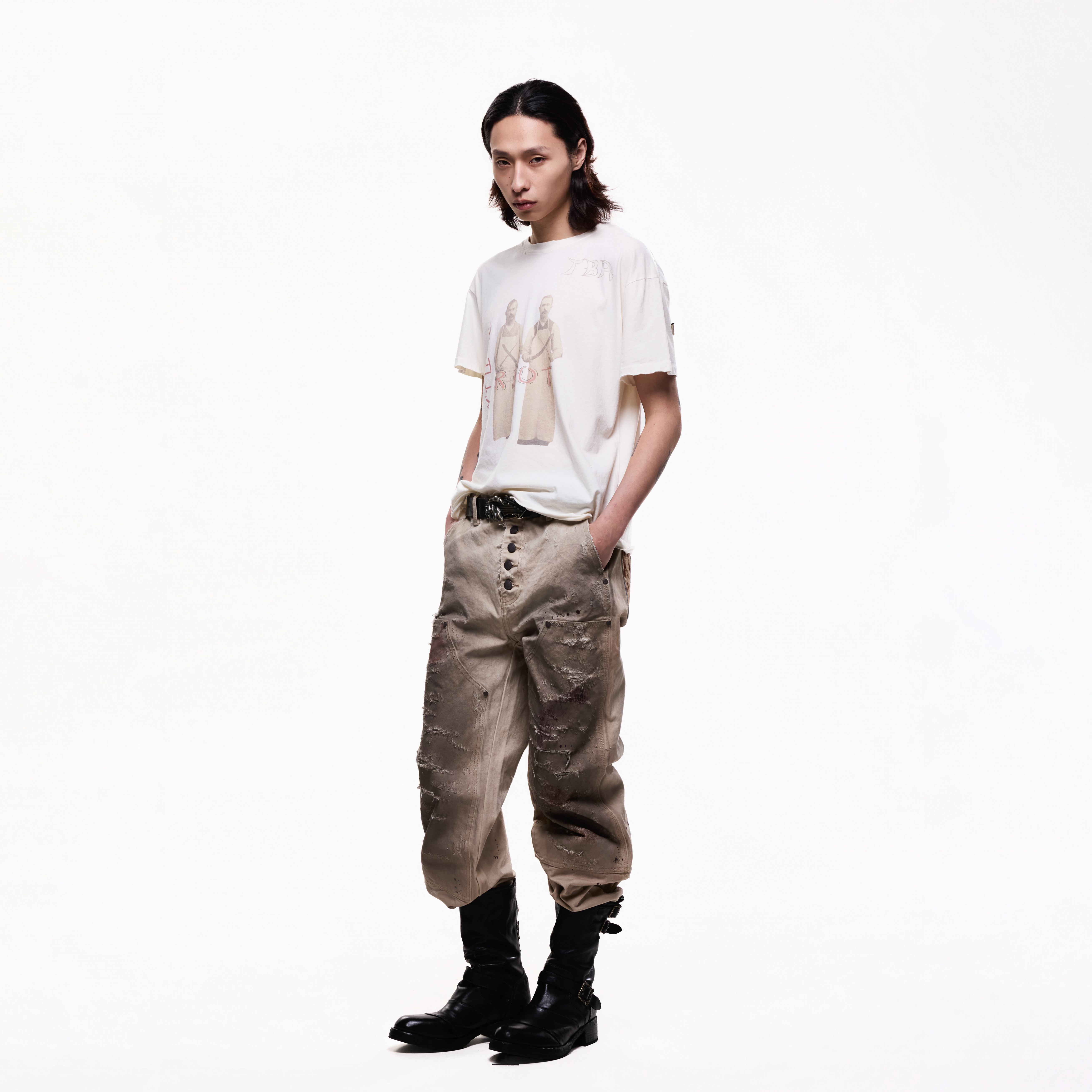 📚 TBR 屠夫手工破坏刀割垂感印花T恤 boxy版型超薄