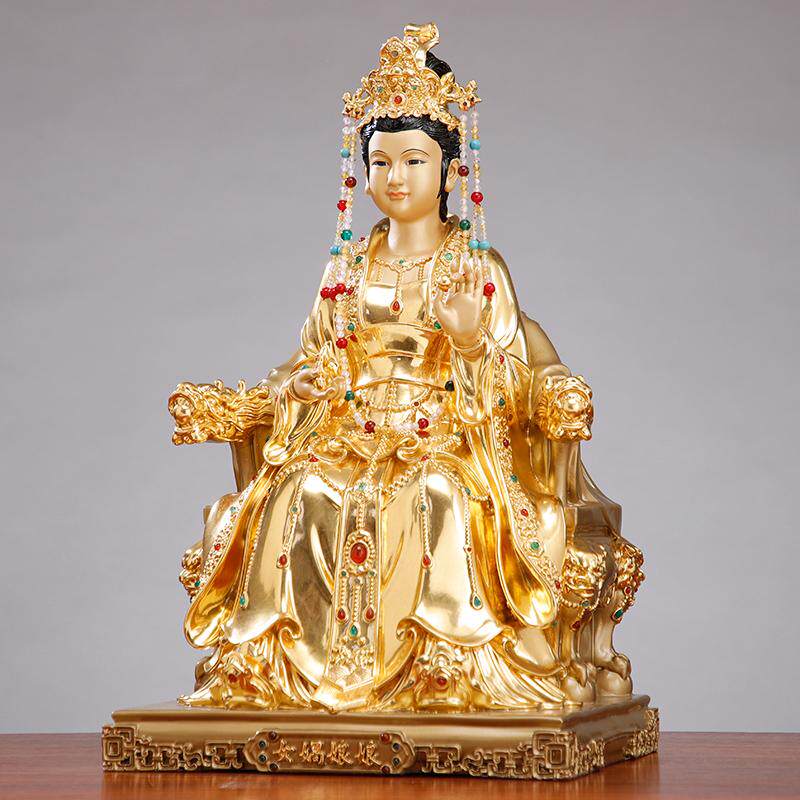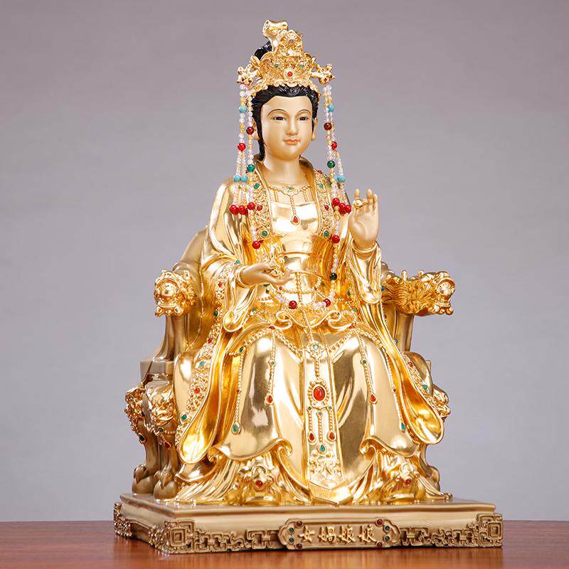 📚 台湾铜贴金女娲娘娘神像家用供奉大地之母女娲补天铜像客厅摆件