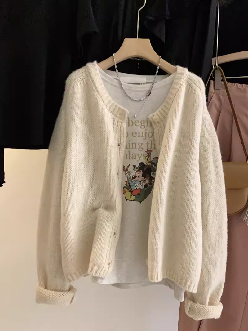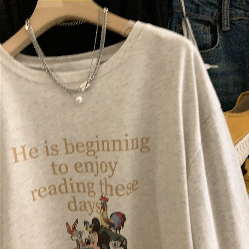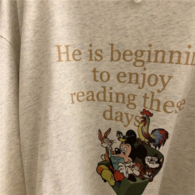 📚 2025新款韩国宽松米奇印花长袖T恤衫女装 chic早秋上衣磨毛打底衫