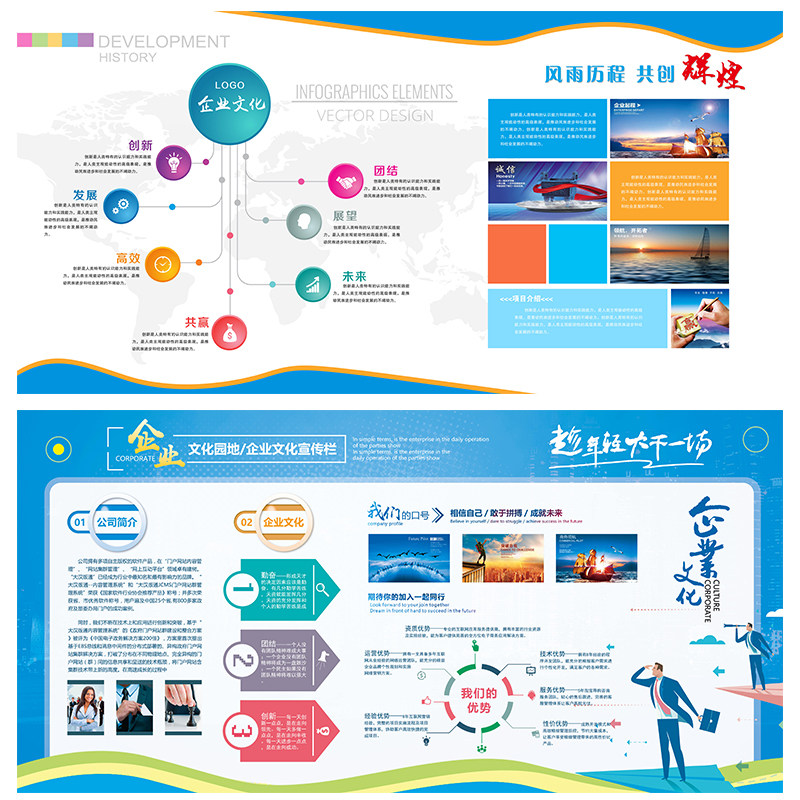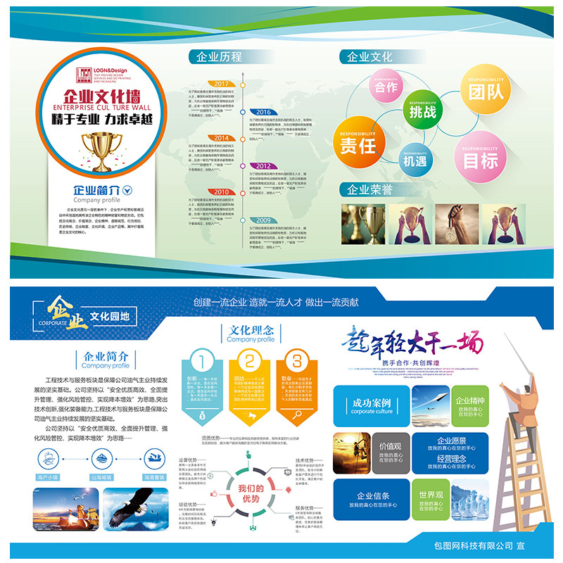📚 公司文化樯企业形象墙设计PSD模板公司简介海报展板宣传栏PS素材