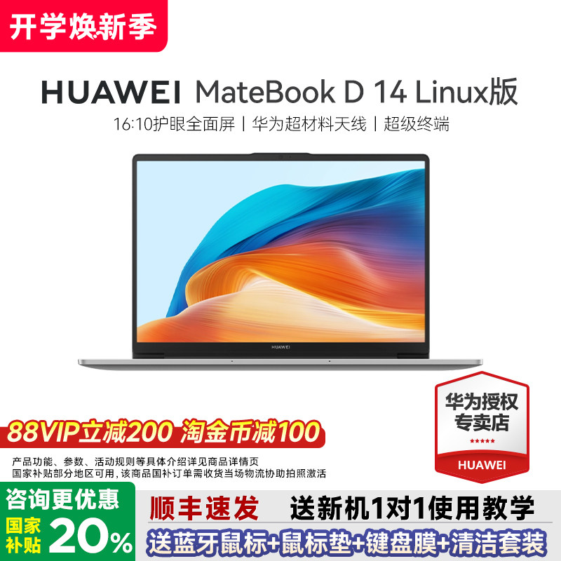 📚 【国家补贴20%】华为笔记本电脑MateBook D14 linux版新款商务办公轻薄本学生学习护眼全面屏官方旗舰店正品