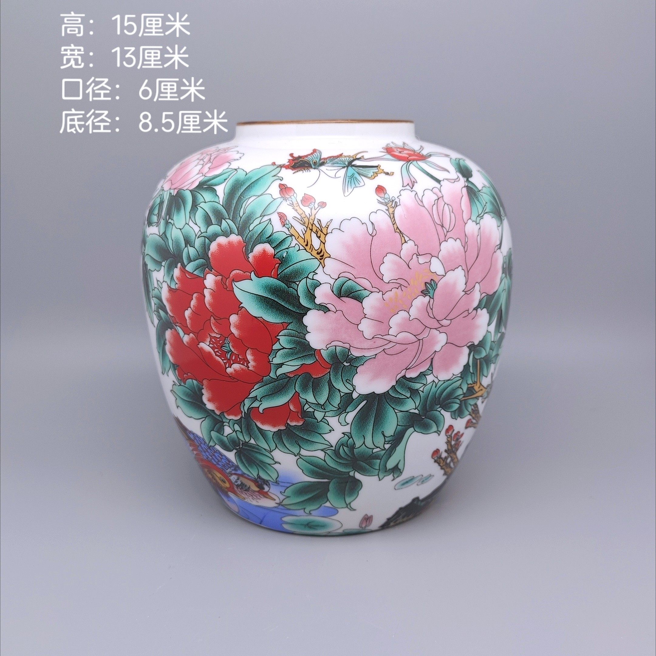 📚 仿古清代光绪年制粉彩釉紫边坛茶叶罐富贵花开瓷罐家居装饰品收藏