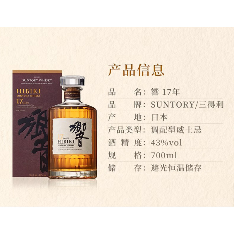 📚 【自营】日本进口响17年调和型威士忌700ml三得利Hibiki洋酒正品