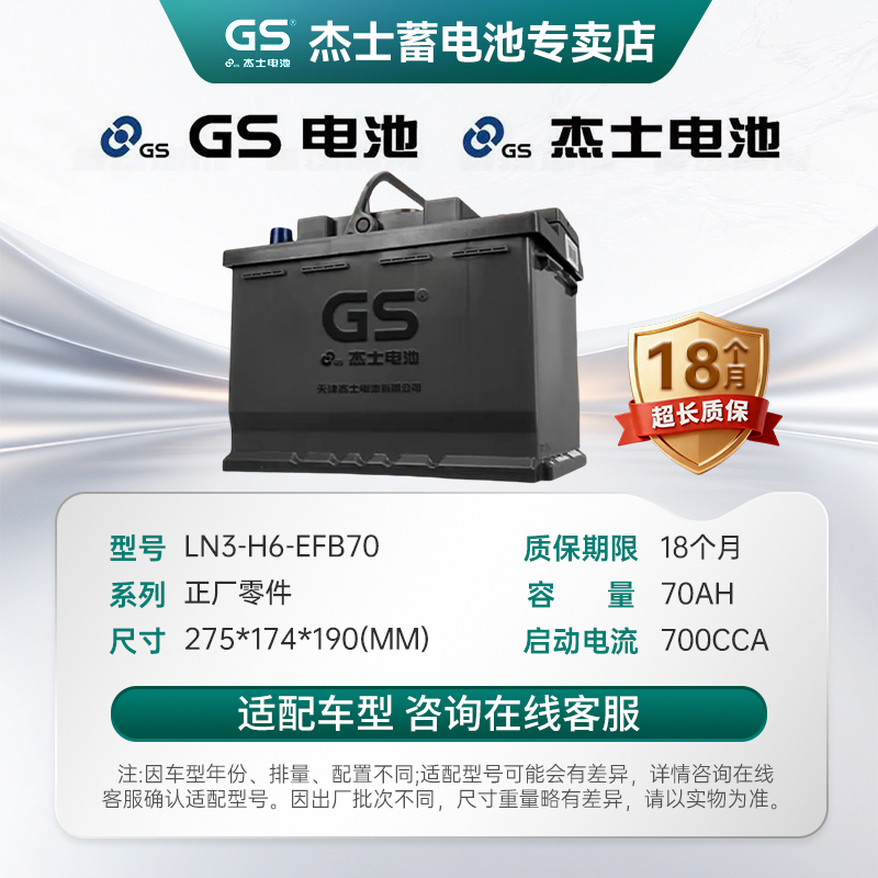 📚 GS统一蓄电池启停EFB70杰士轩逸逍客奇骏科雷傲嘉天籁汽车电瓶12V
