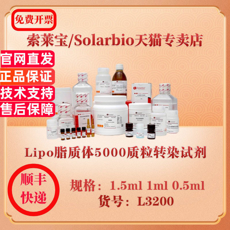 📚 索莱宝Solarbio Lipo脂质体5000质粒转染试剂 细胞生物学 L3200 1.5ml 1ml 0.5ml 科研实验试剂