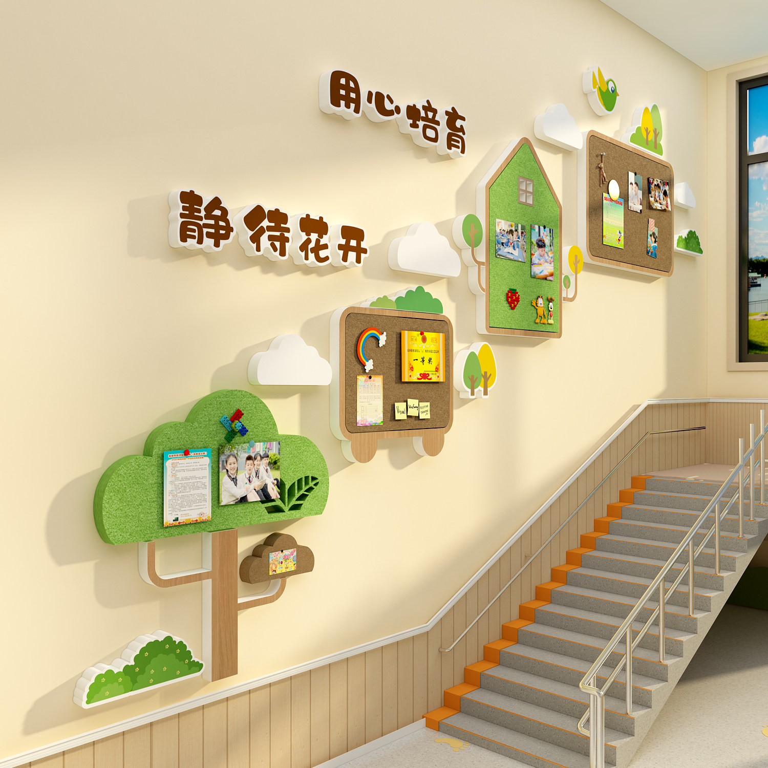 📚 毛毡贴幼儿园楼梯墙面装饰环创主题成品托管班级文化展示板栏照片