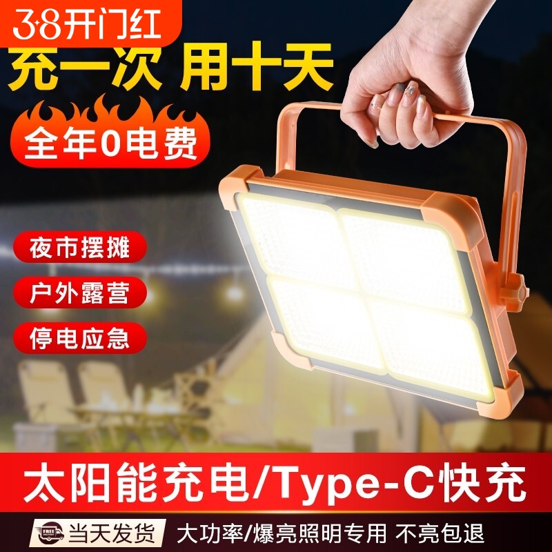 📚 太阳能灯户外灯地摊LED充电灯摆摊夜市灯停电应急照明手提露营灯