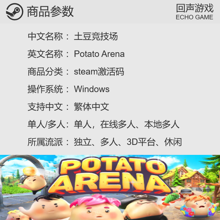 📚 Steam 正版 国区 土豆竞技场 Potato Arena 激活码cdkey 激活入库