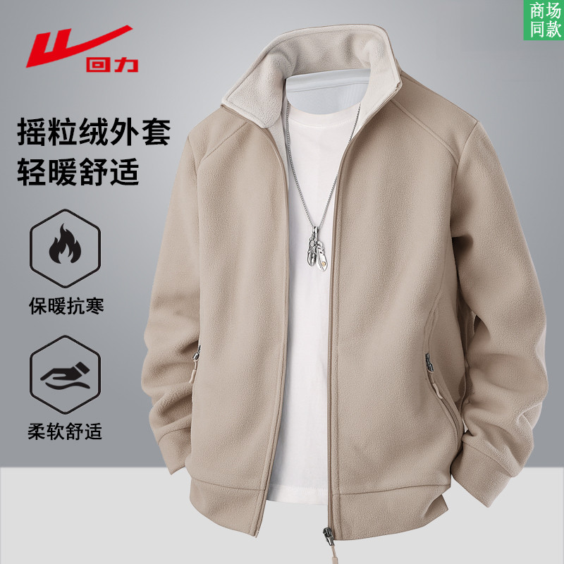 📚 回力大码摇粒绒2025冬季新保暖加厚加绒男士立领时尚休闲外套潮流
