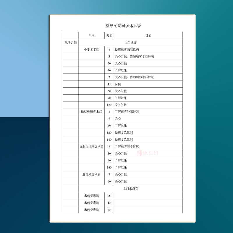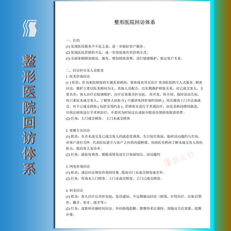 📚 整形医院回访体系表美容登记本会员顾客资料信息手术满意度皮肤疗