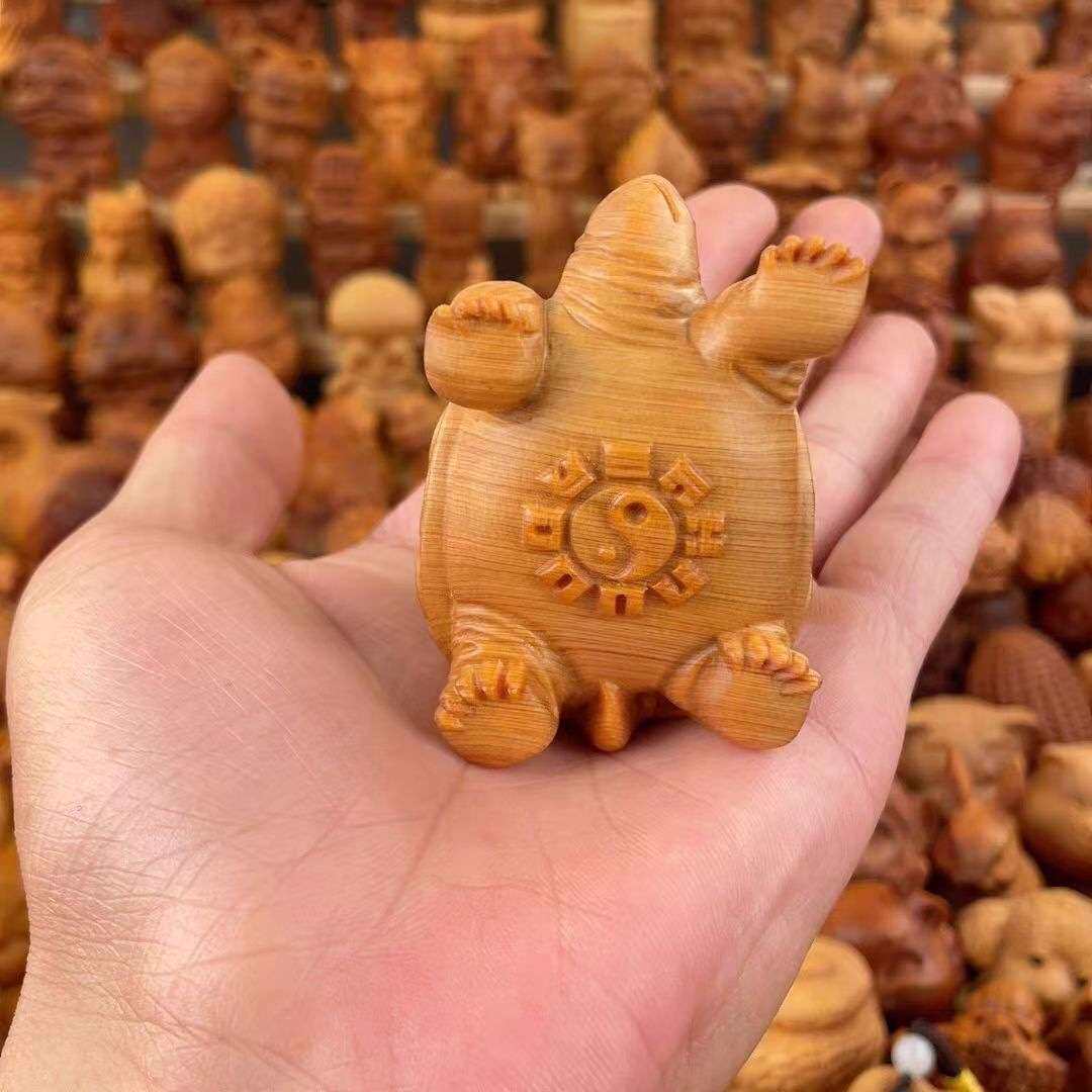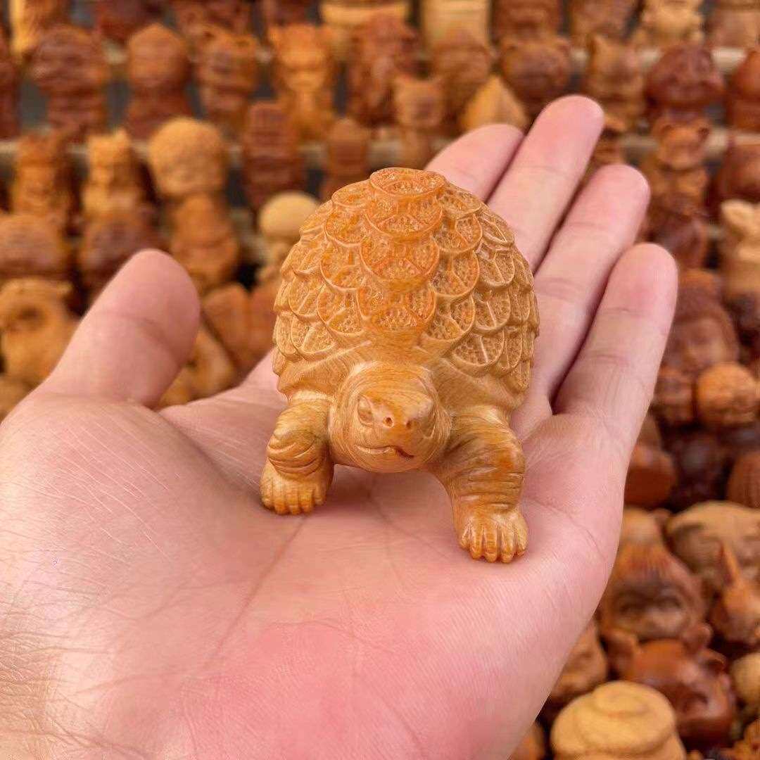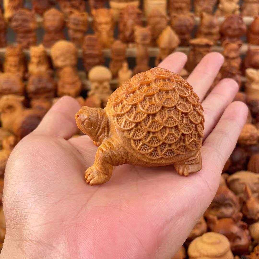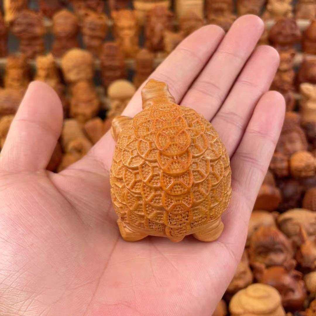 📚 陈化崖柏实木雕刻金钱龟手把件男士随身盘玩富甲天下招财汽车摆件