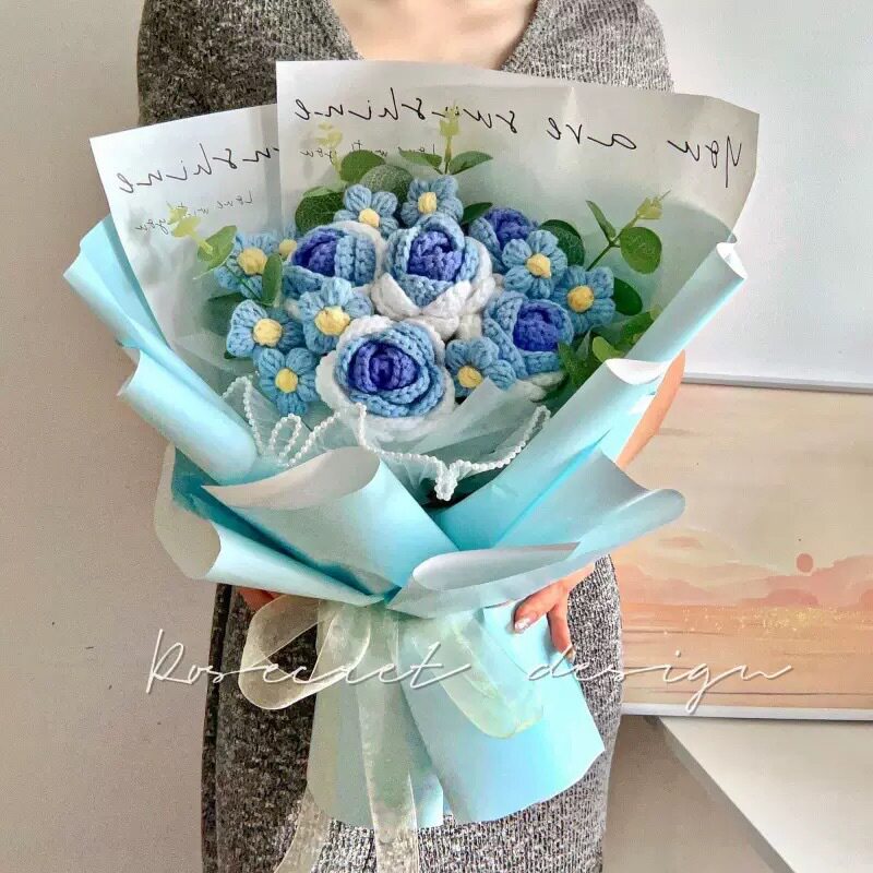 📚 大束毛线手工钩织玫瑰花束成品高级感情人节生日礼物送女友