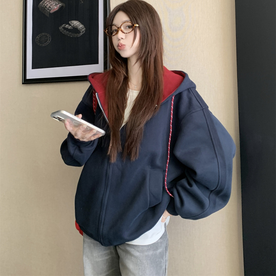 📚 秋冬2025新款宽松百搭加厚外套上衣美式复古慵懒风开衫连帽卫衣女