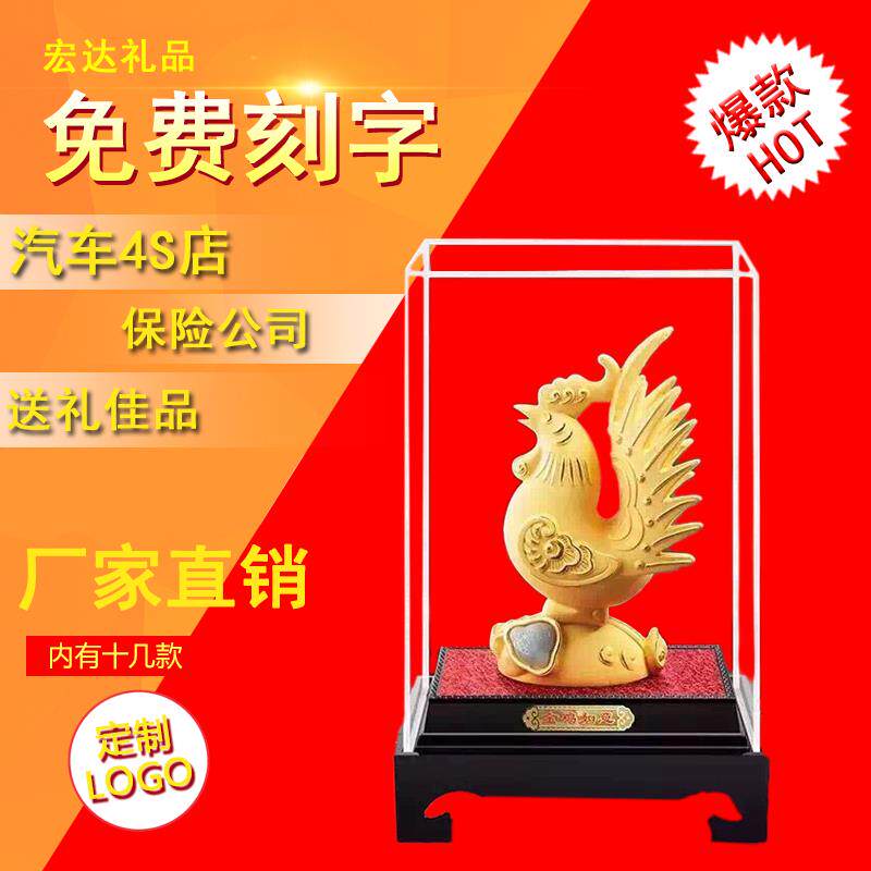 📚 绒沙金生肖鸡金鸡摆件商务活动礼品鸡年贺岁吉祥物家居镀金工艺品