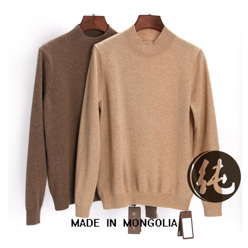 📚 NOLOOR蒙古国进口女士纯山羊绒衫半高领针衫套头纯色修身秋冬打底