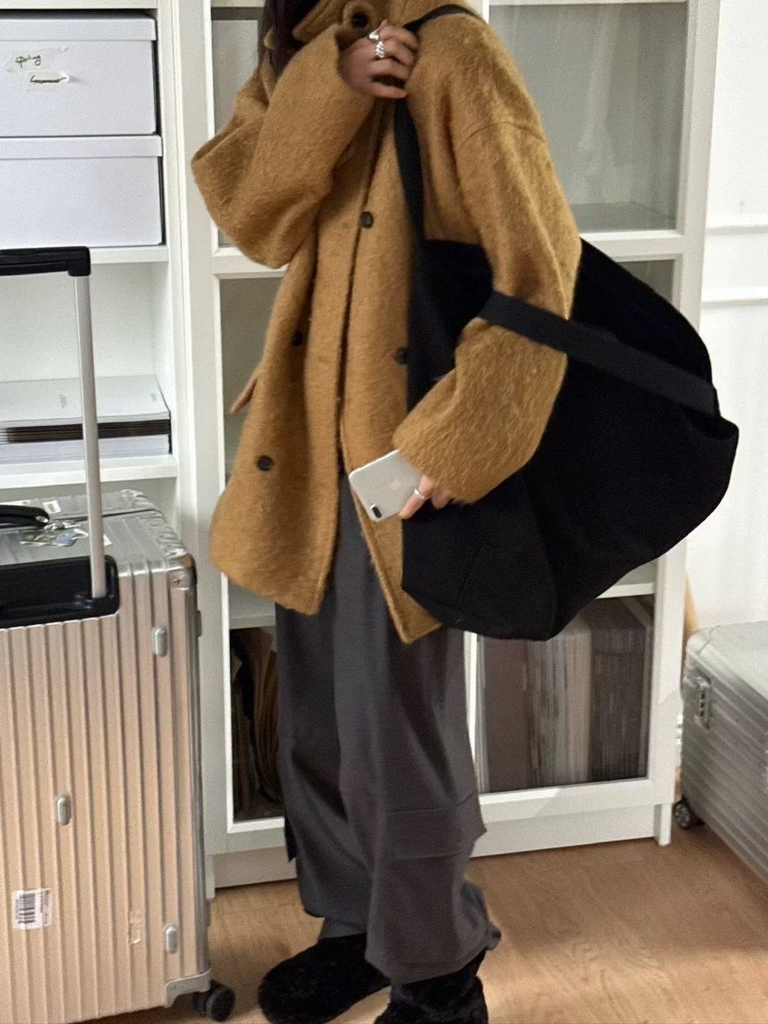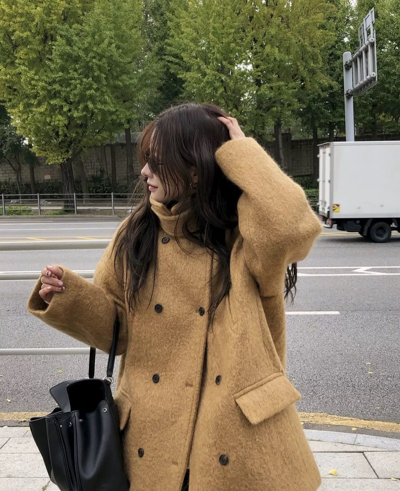📚 现 bubble韩代韩国东大门London flat简约中长款立领羊驼毛大衣