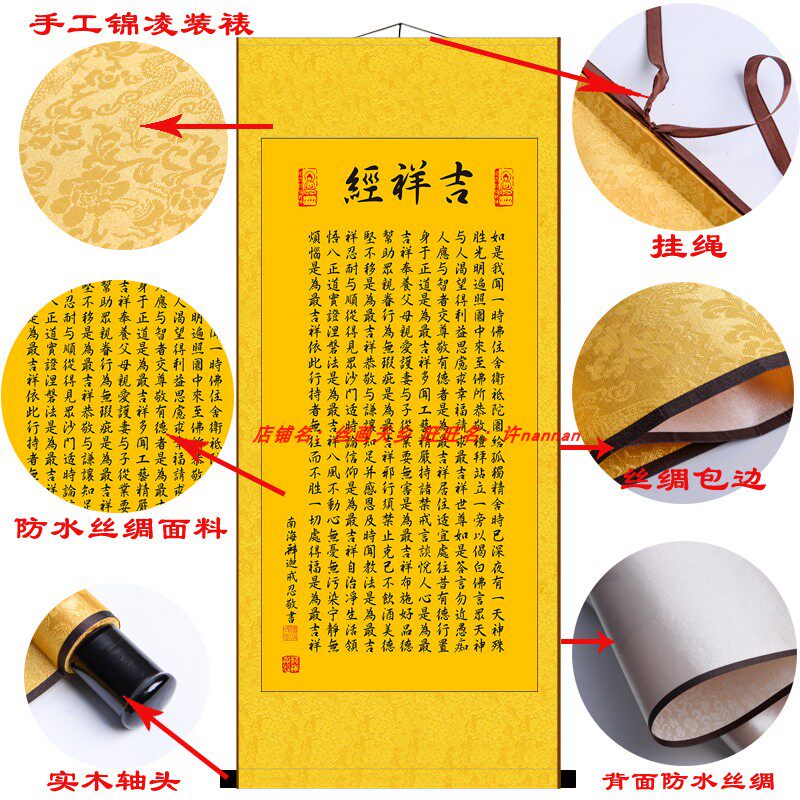 📚 佛家经书挂画吉祥经南传大藏经丝绸卷轴画佛堂玄关装饰不褪色包邮