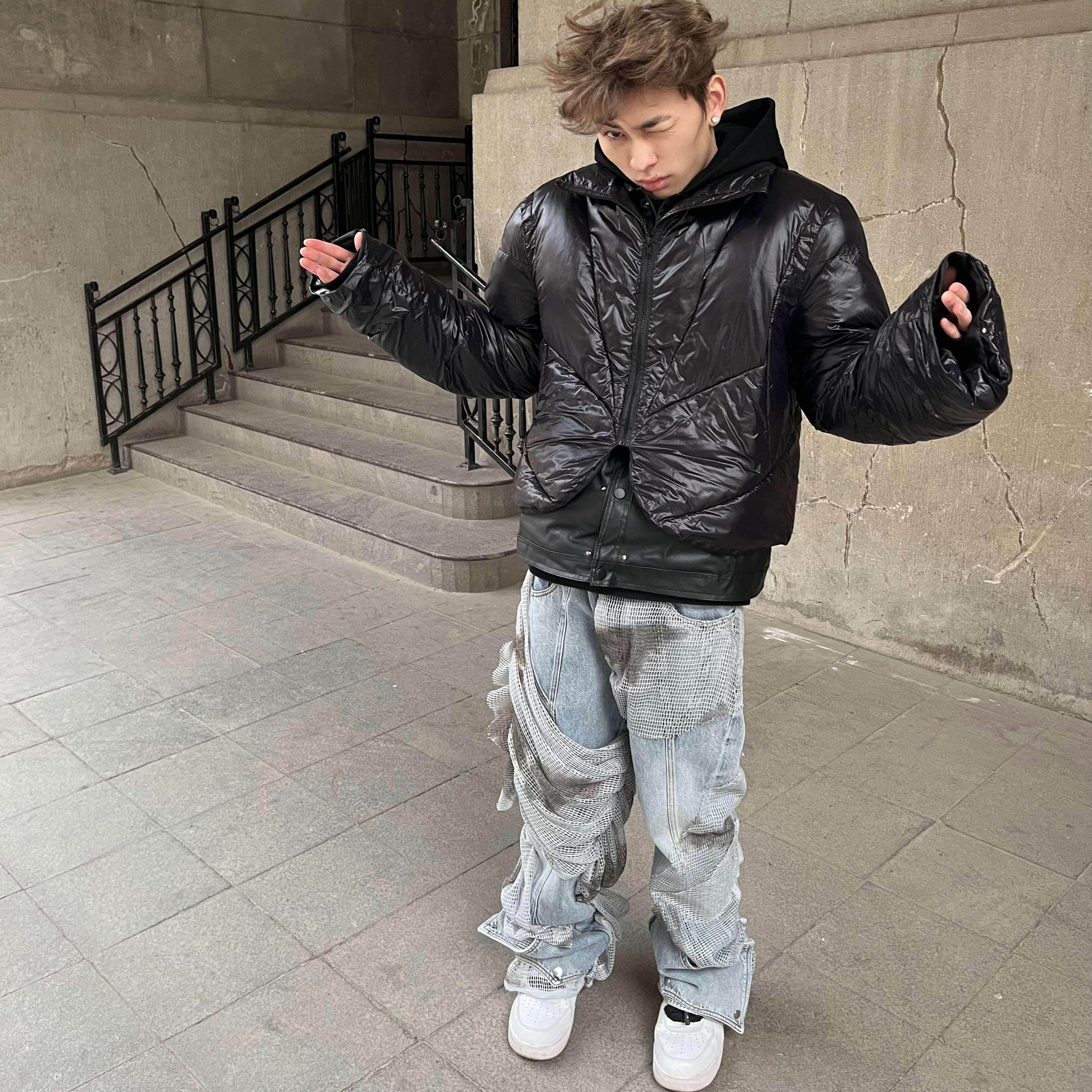 📚 WithoutMe/Dualpersonality拼接黑灰短款解构立领棉服棉衣外套
