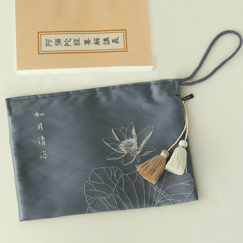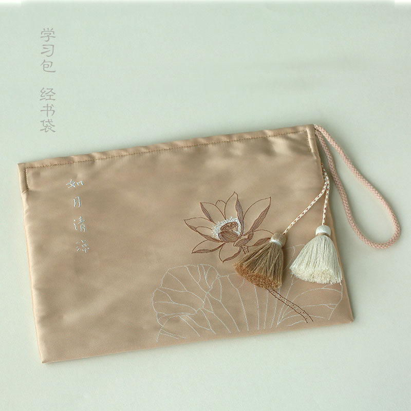 📚 中式禅意丝绣经书包大号双层经书布袋学习包收纳海青袋国风礼品袋