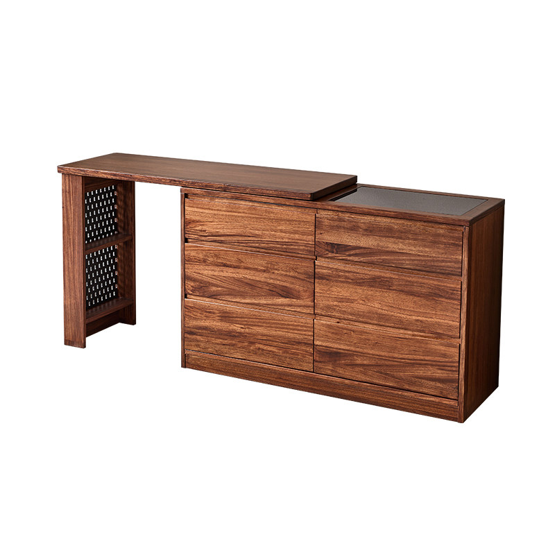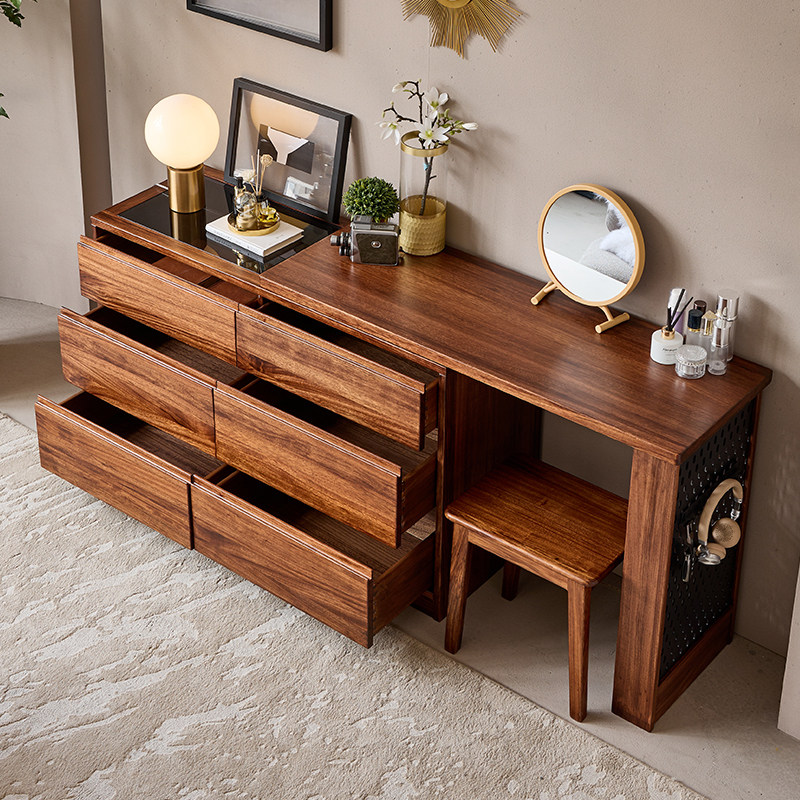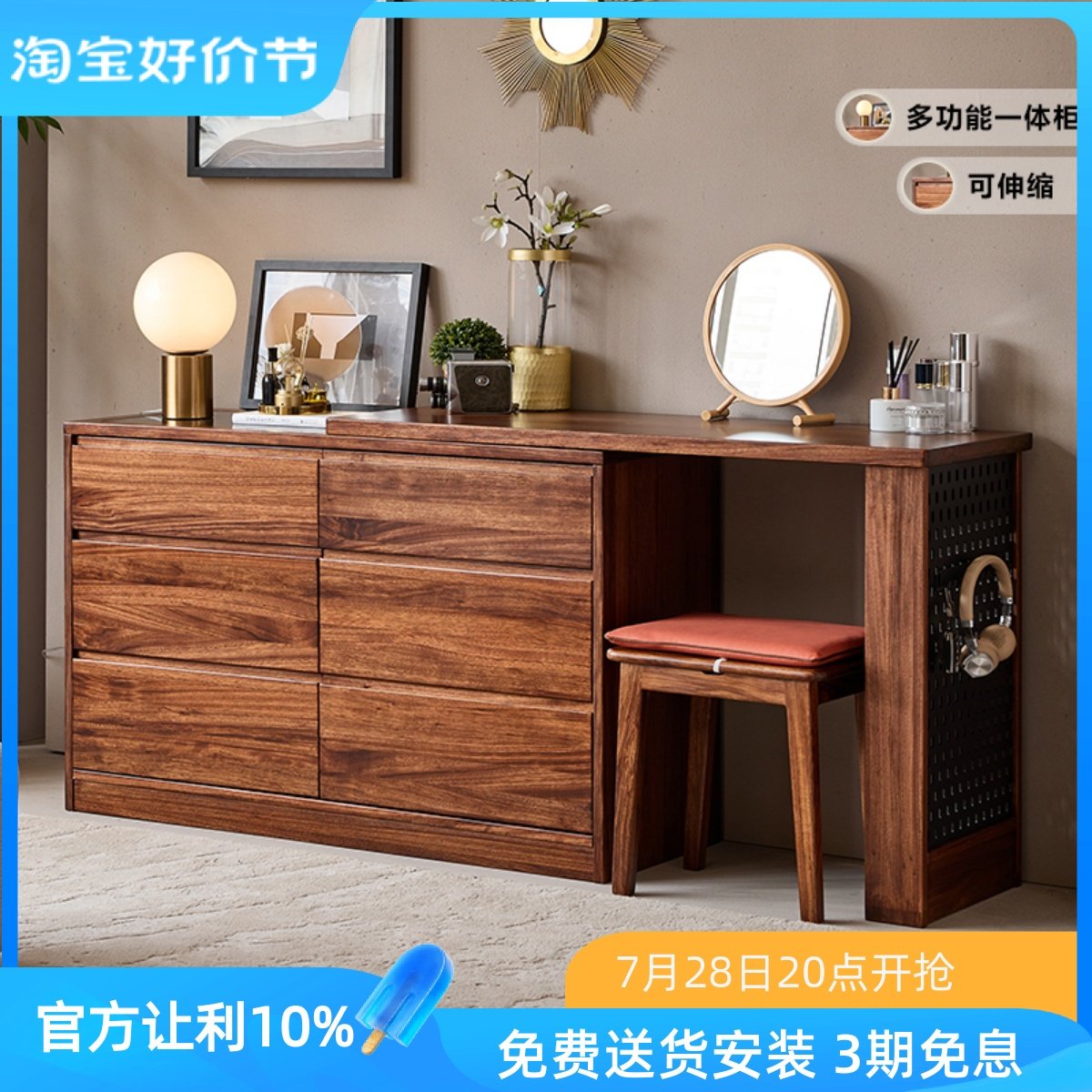 📚 乌金木实木六斗柜梳妆台一体电脑书桌卧室可伸缩意式多功能六斗橱