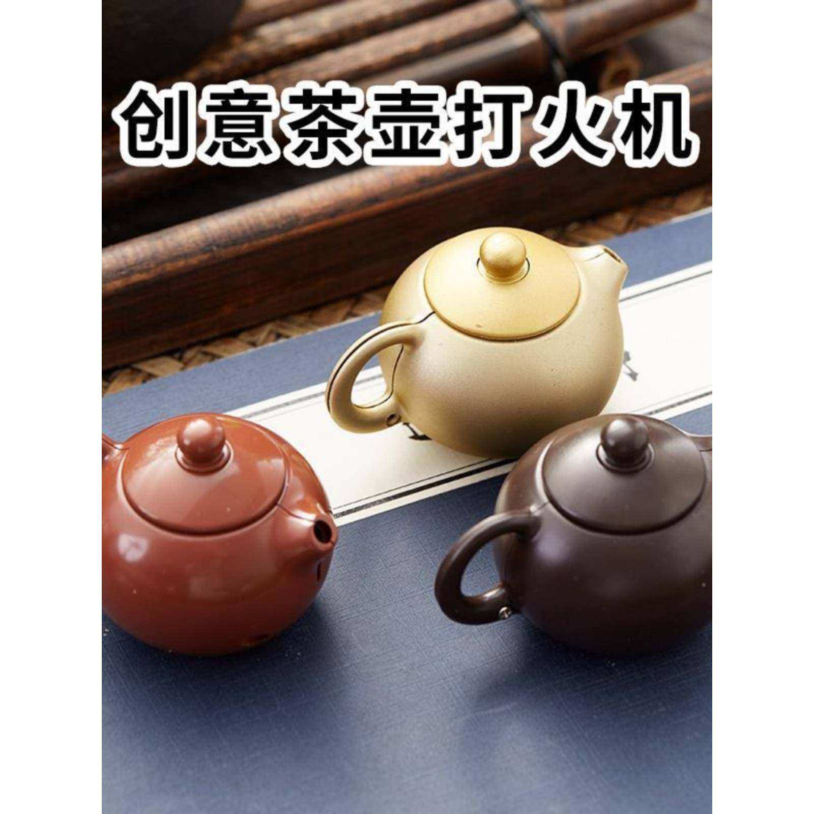 📚 创意紫砂壶款把把壶打火机摆件防风直冲蓝火焰个金属送男友礼物潮