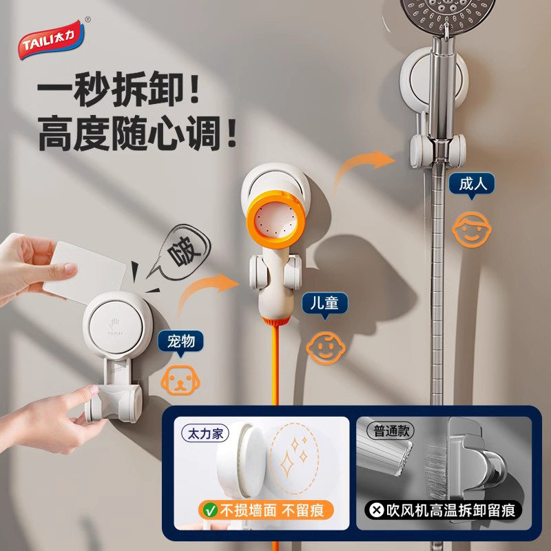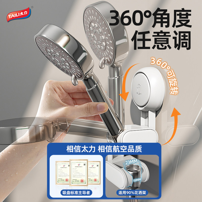 📚 太力万向花洒支架免打孔淋浴淋雨喷头置物架可移动吸盘挂钩固定器
