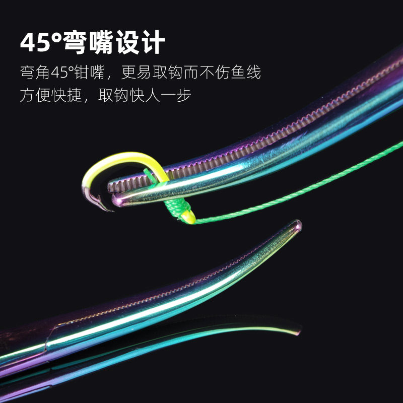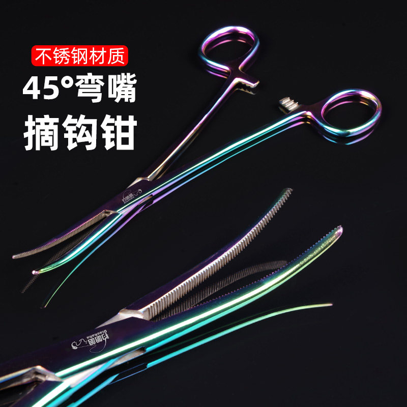📚 多功能钓鱼摘钩钳大号弯头不锈钢脱钩器路亚钳子止血钳深喉取钩器