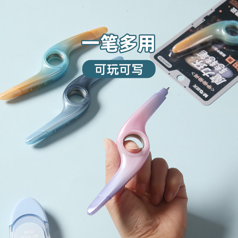 📚 晨光 宇宙星河 转转中油笔0.5mm黑色双头圆珠笔创意玩具魔力环旋转中学生书写渐变外观ABPC6701文具