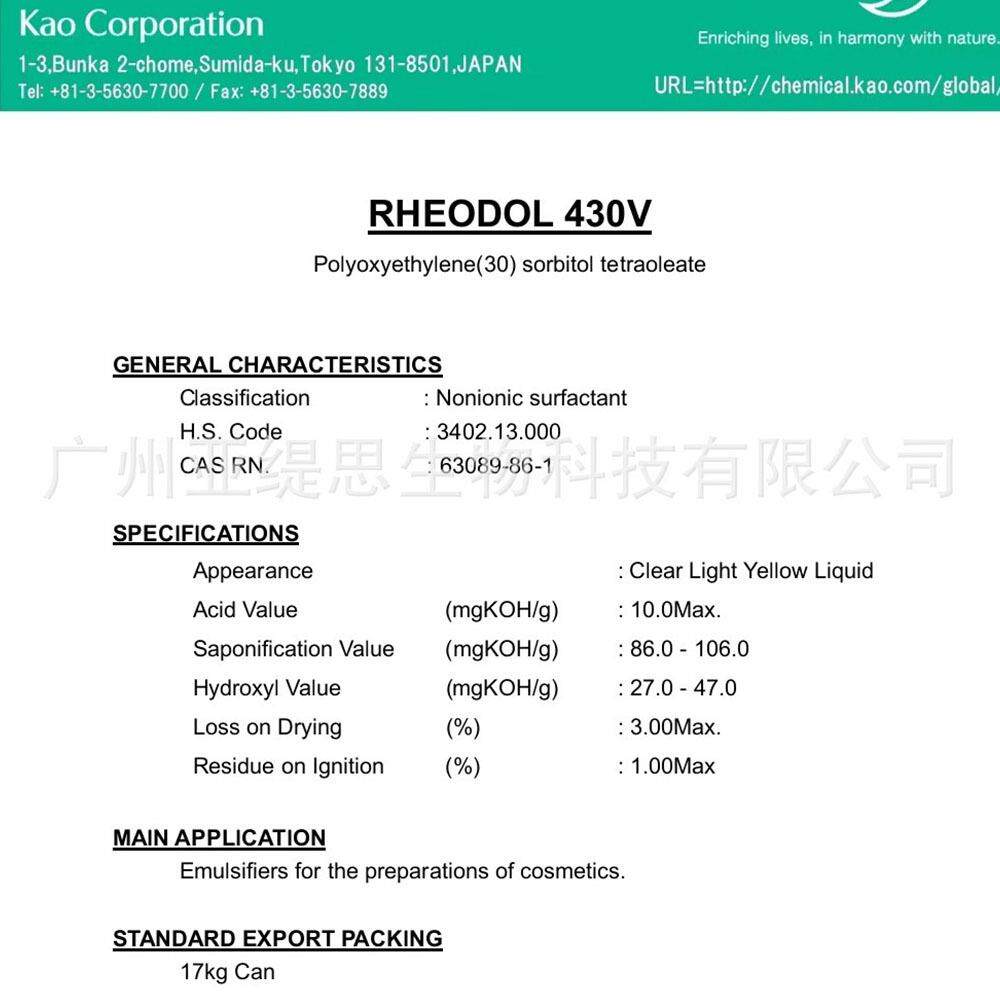 📚 花王RHEODOL430V卸妆油、卸妆膏、沐浴液等乳化剂,温和无刺激