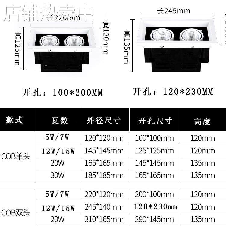 📚 cob斗胆灯led豆胆灯格栅射灯方形单头两头双头射灯筒灯15w中性光