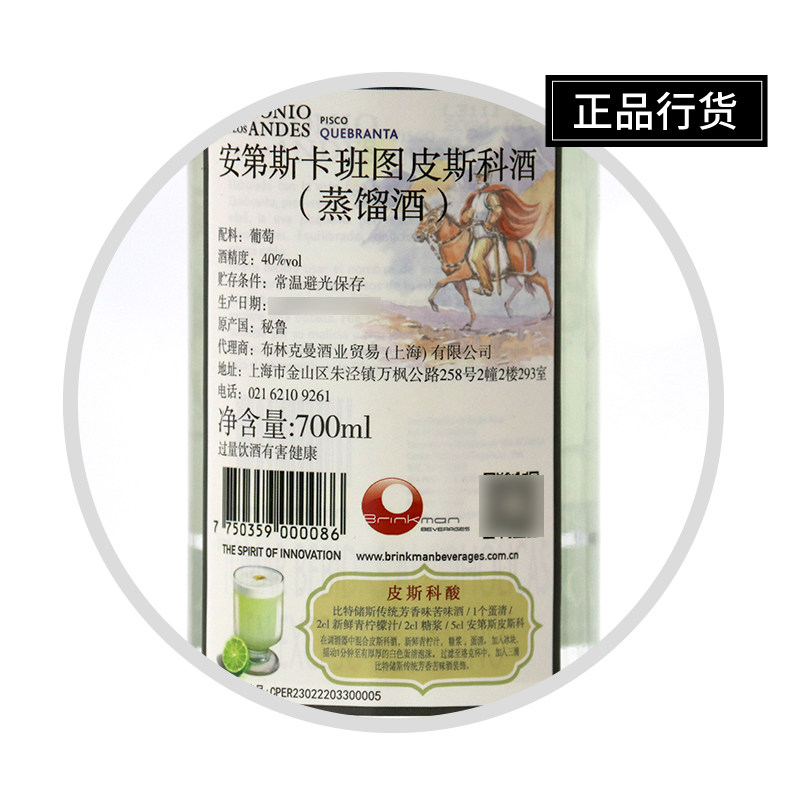 📚 PISCO安第斯卡班图皮斯科酒白兰地700ml鸡尾酒基酒调酒进口洋酒