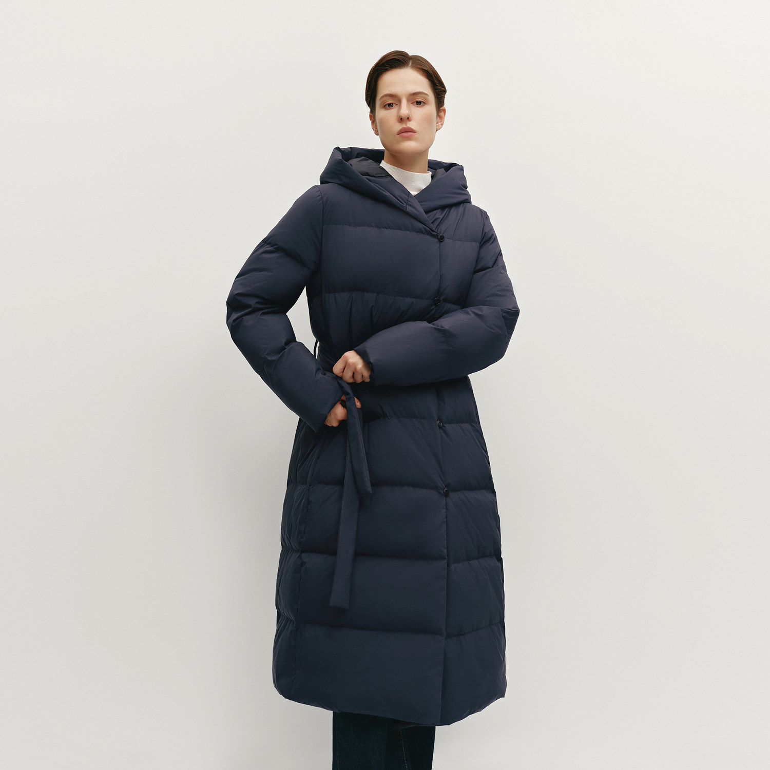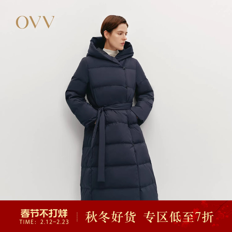 📚 OVV秋冬热卖女装大横格绗线保暖蓬松连帽长款羽绒服