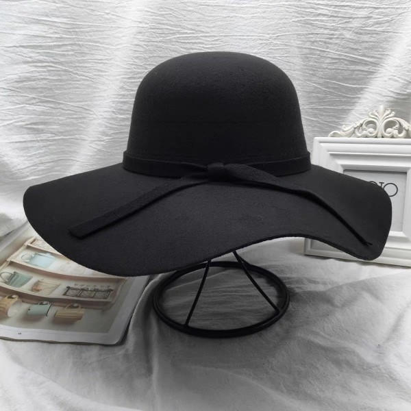 📚 黑色复古大檐帽毛呢帽子女秋冬天潮休闲百搭圆顶韩版小礼帽女英伦