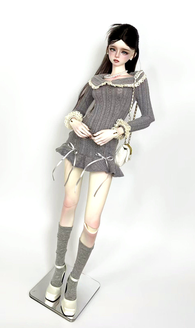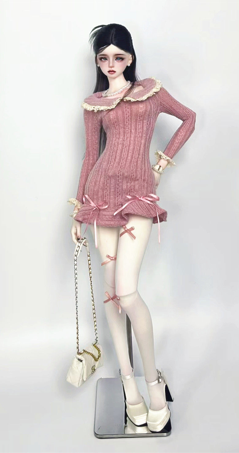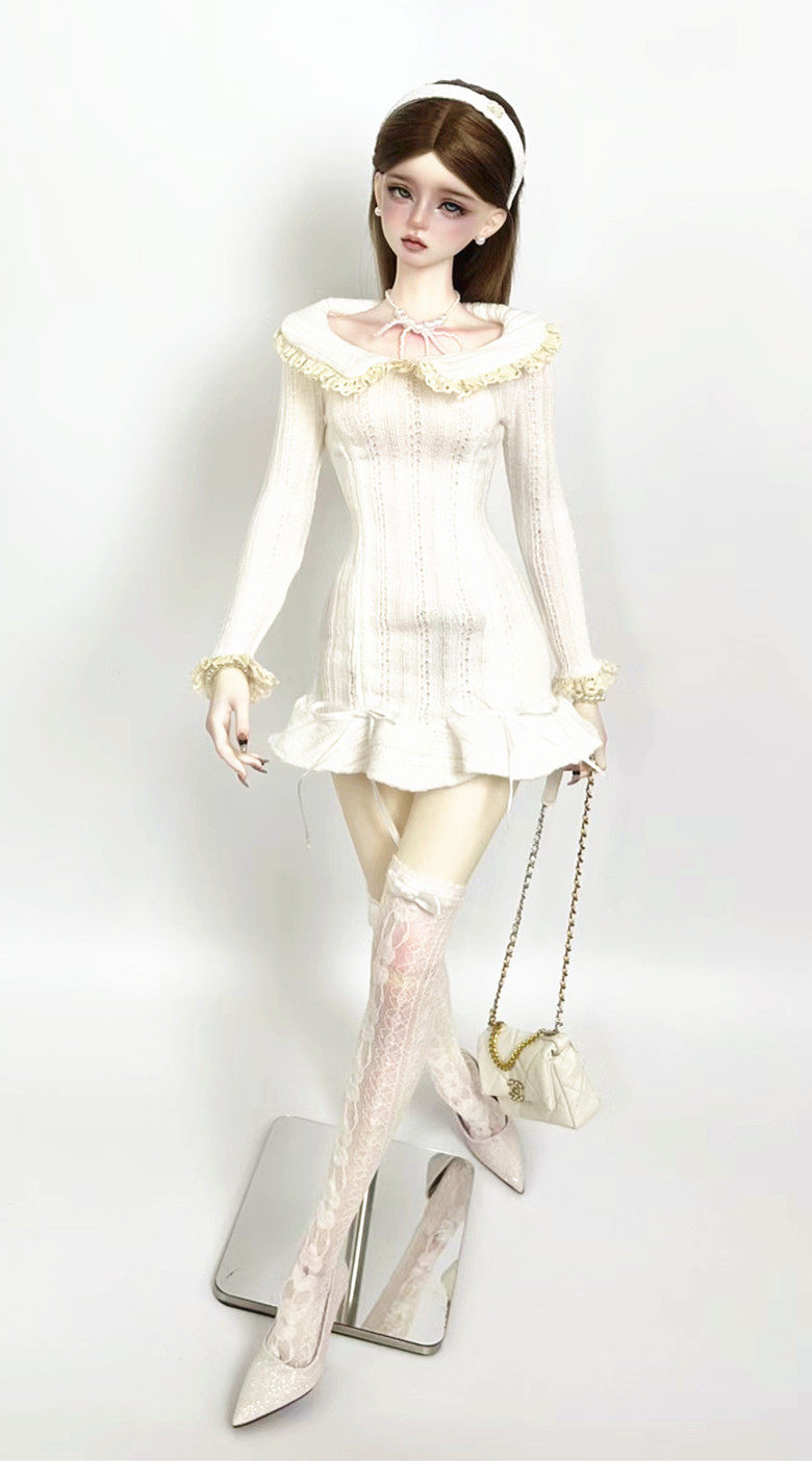 📚 bjd3分4分娃衣镂空针织抽带连衣裙