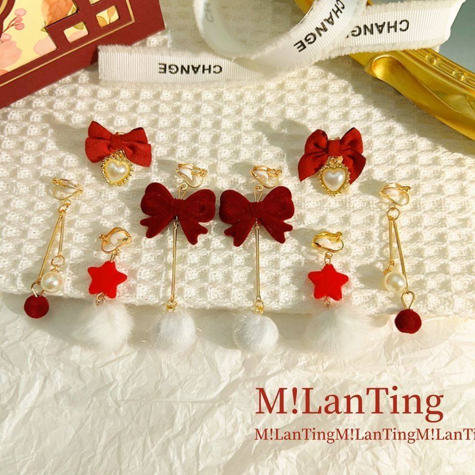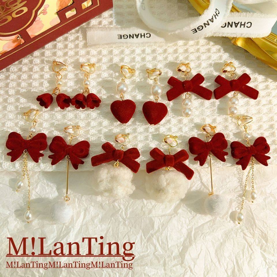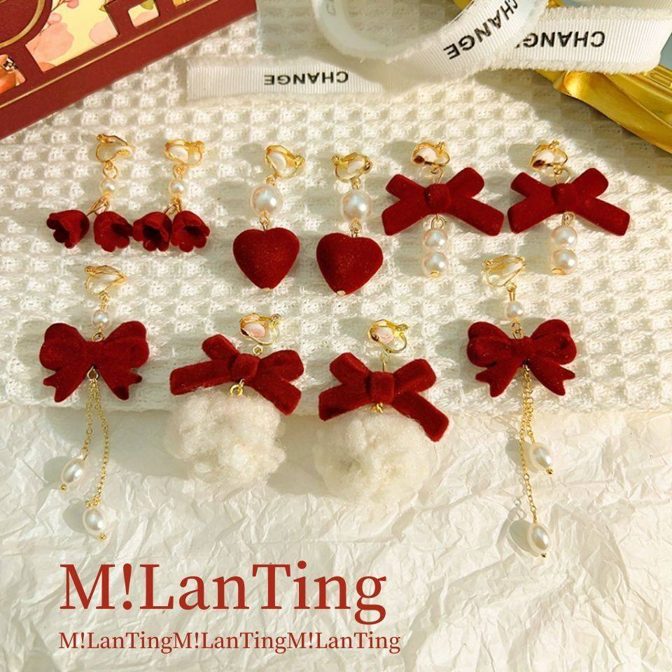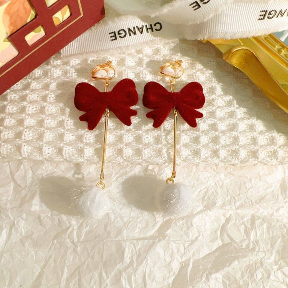💖各位小仙女们,今天我要跟大家分享一款让我爱不释手的潮耳饰!甜美丝绒酒红蝴蝶结耳夹长款镶钻珍珠耳环,简直是复古宫廷风的女神标配!