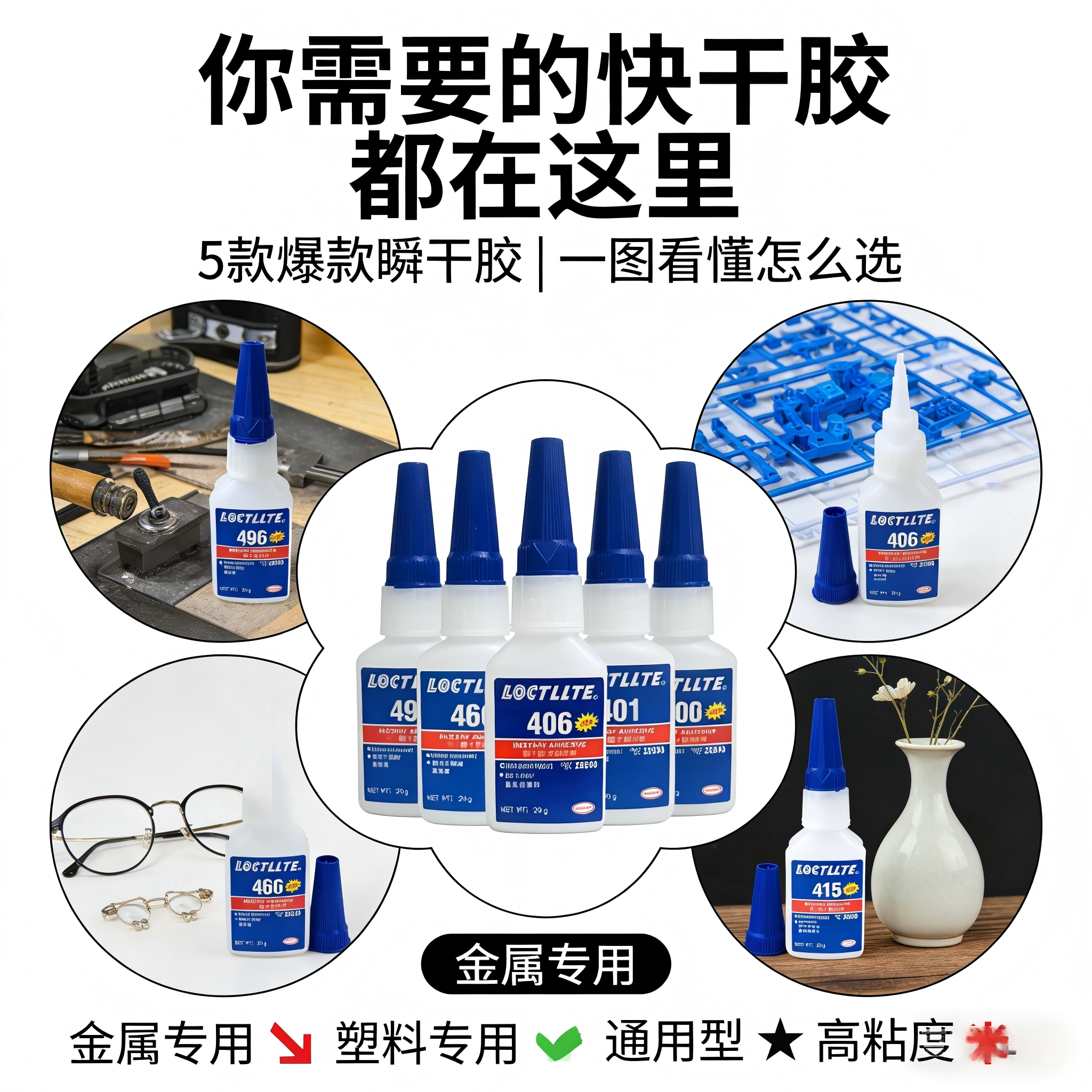 📚 401 403 406低白化快干胶416 460 495 498瞬干胶 高透明强力胶水