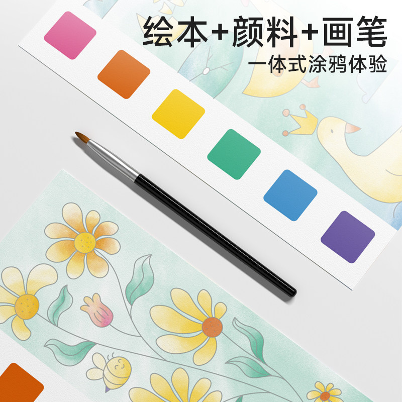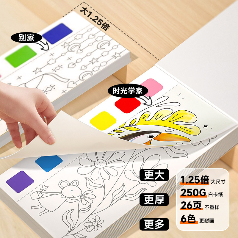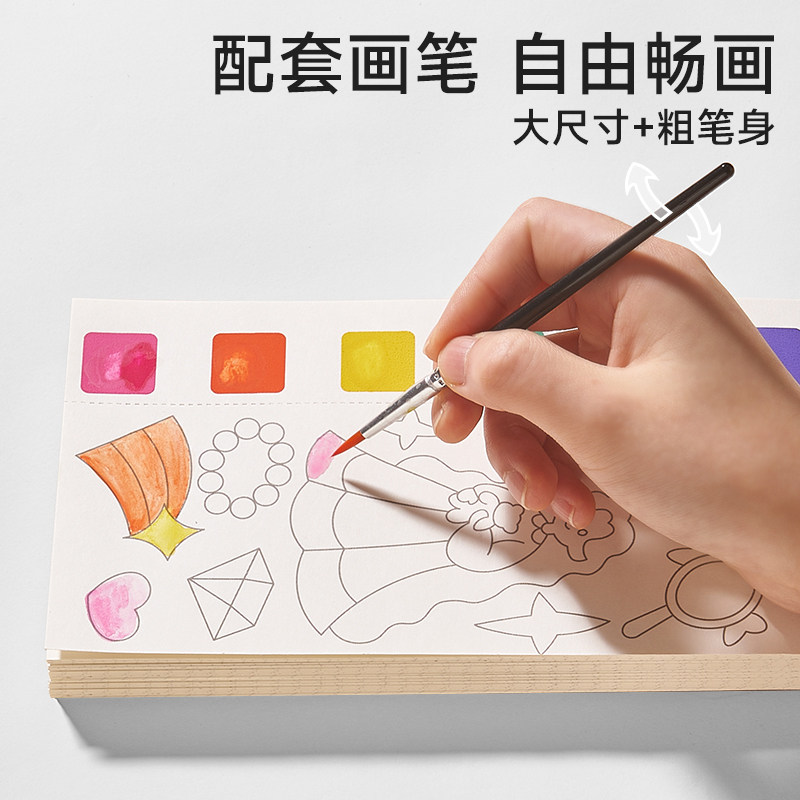 📚 时光学便携水彩涂色本儿童便签画画本绘本填色涂鸦水画幼儿水粉画