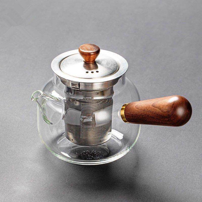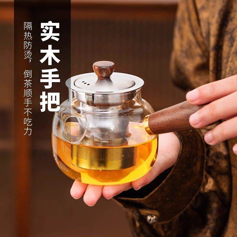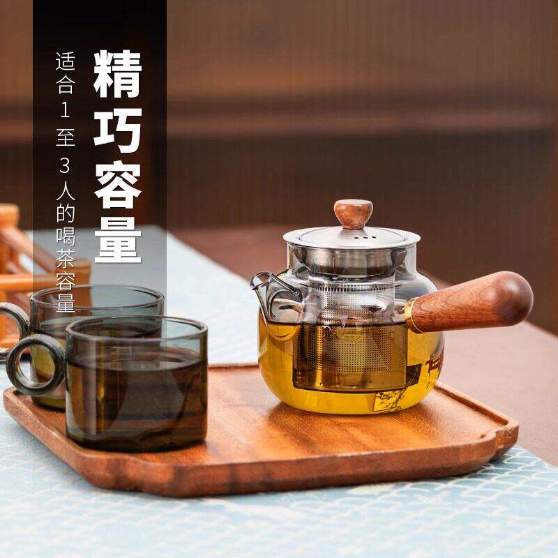 📚 加厚侧把壶玻璃煮茶器耐高温办公室耐热单壶小号带过滤网泡茶壶
