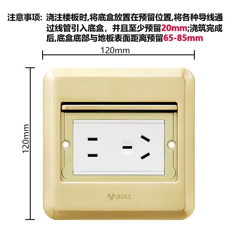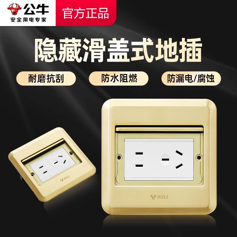 📚 公牛隐藏式五孔地插平推式隐形地面插座网络地插超薄防水地板插座