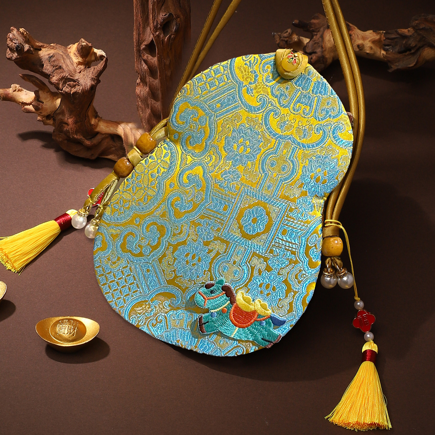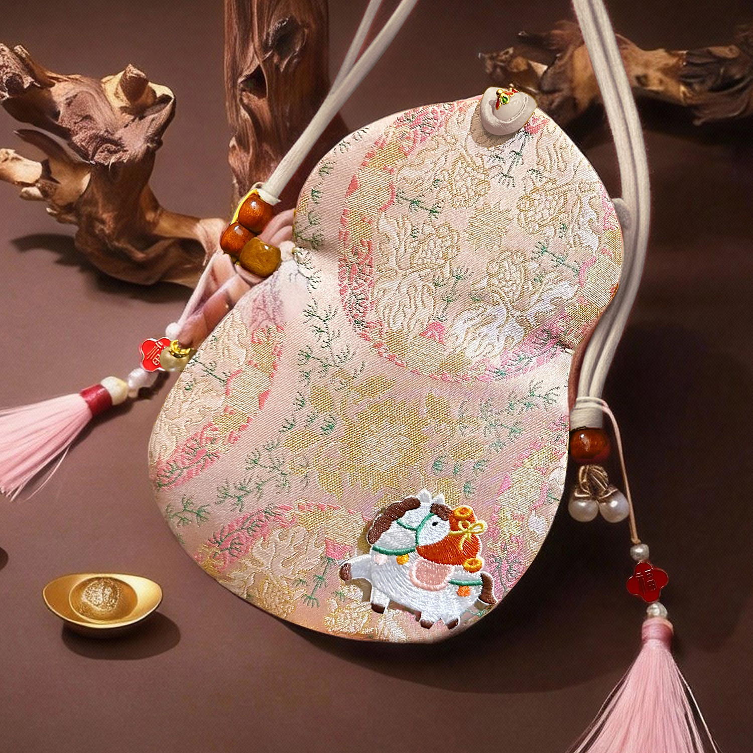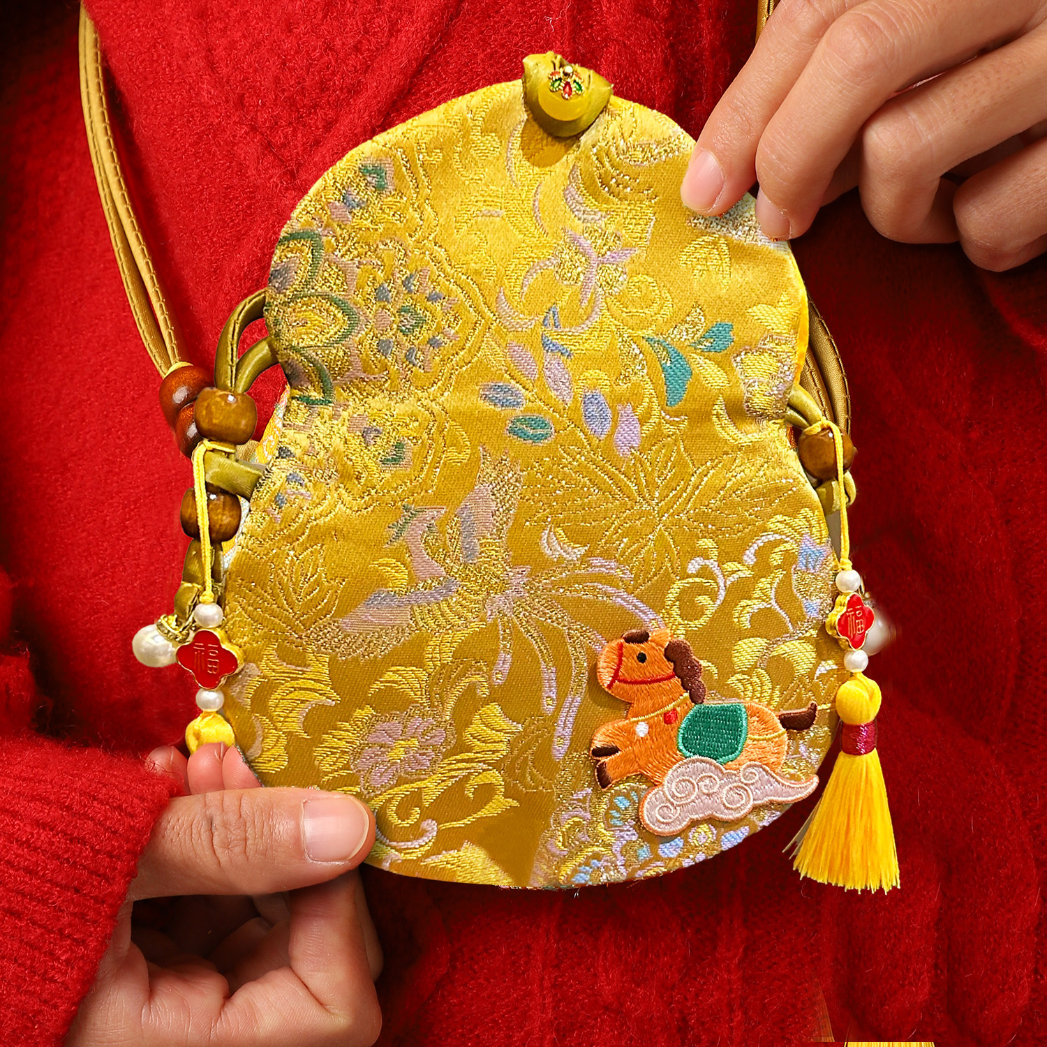 📚 新年布艺红包袋2026马年新款宋锦葫芦包春节过年刺绣手机零钱包