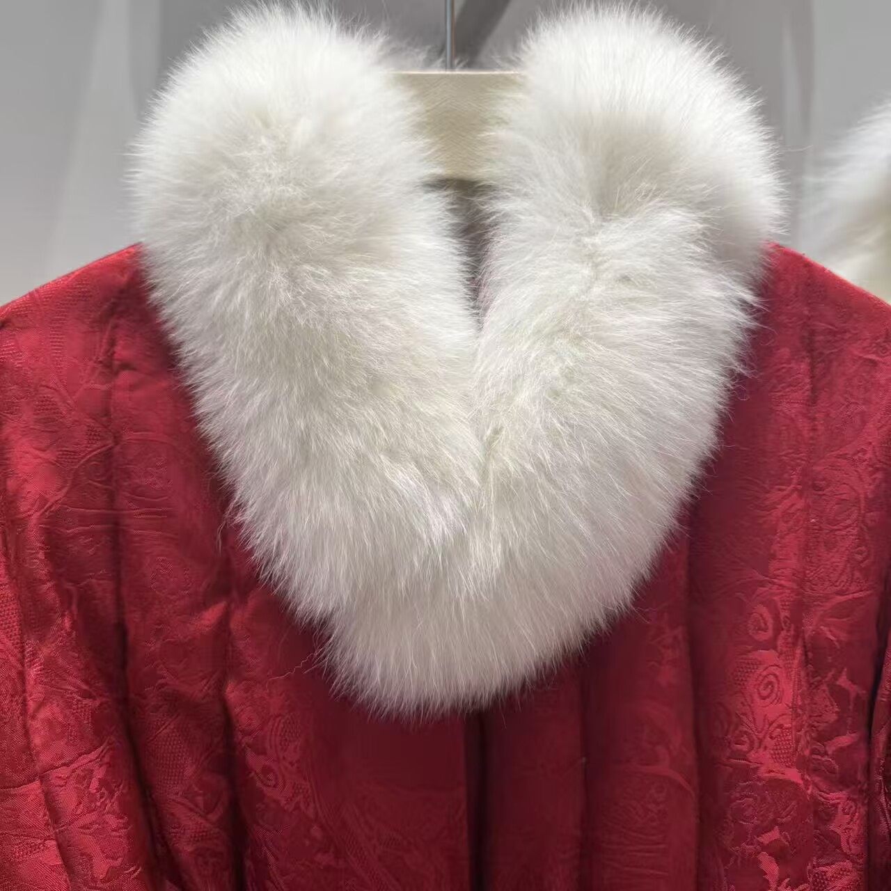 📚 2025冬天新款千金风粉色毛领收腰鹅绒羽绒服女中长款显瘦保暖外套