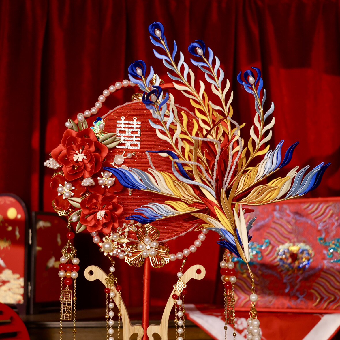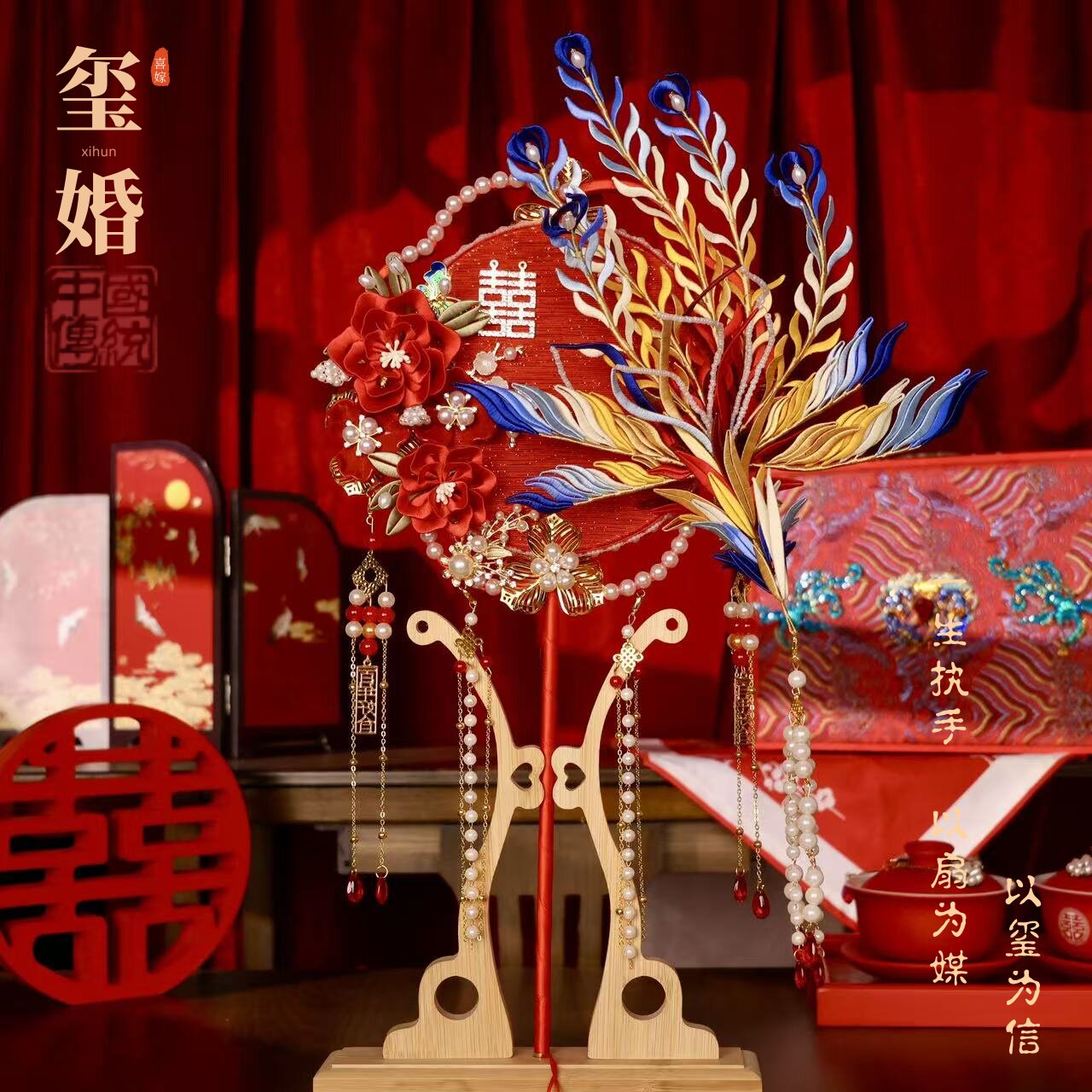 📚 非遗缠花团扇新娘结婚diy材料婚礼双面高级手工秀禾喜扇成品