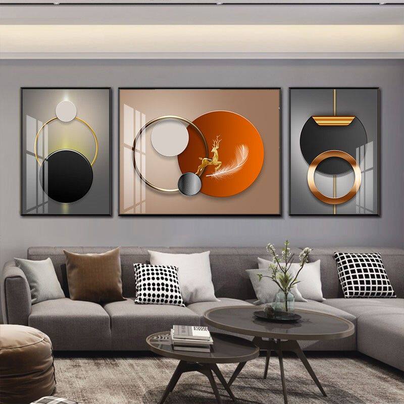 📚 客厅装饰画沙发背景墙挂画壁画简约现代高档大气晶瓷画镶钻三联画